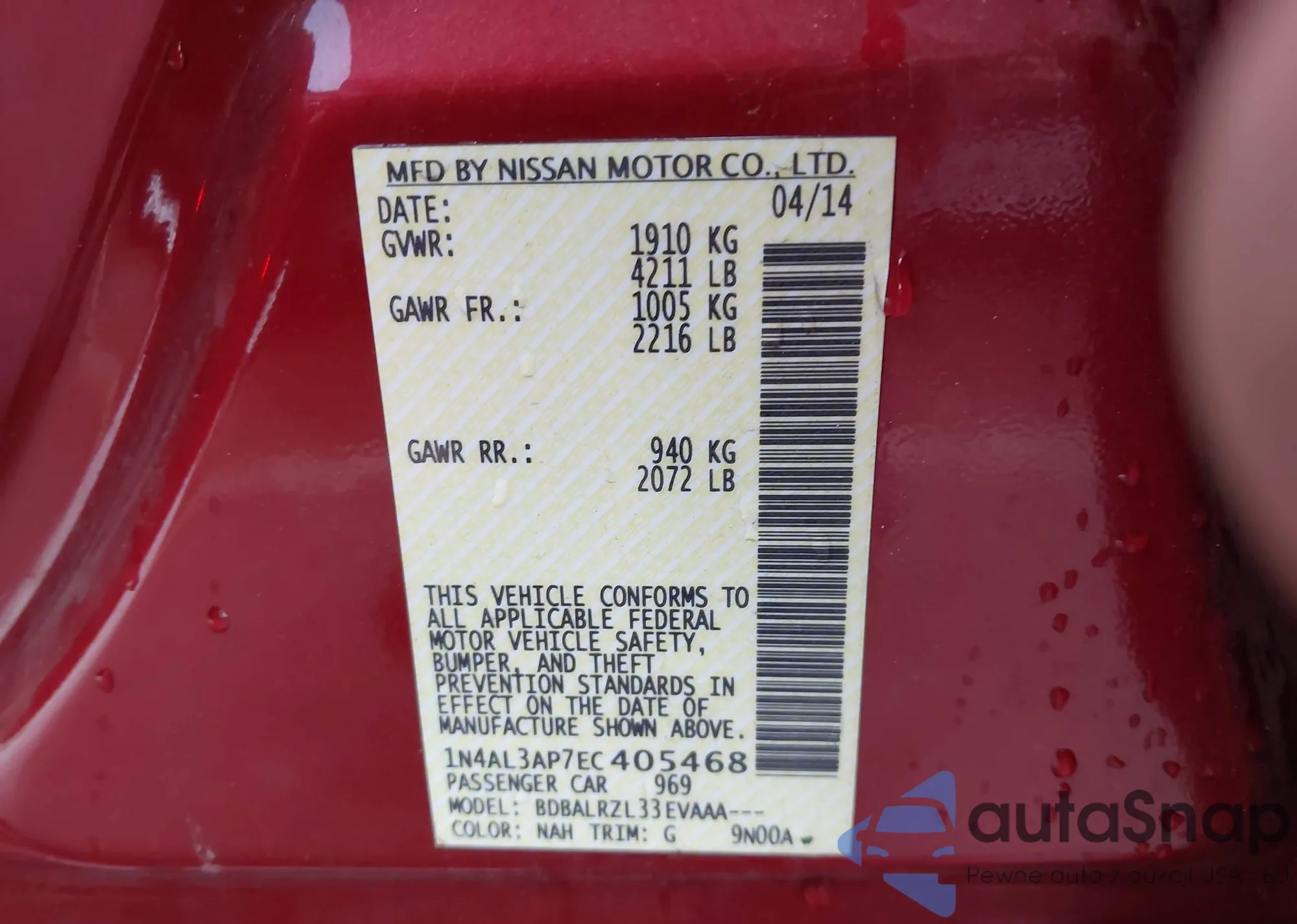 • VIN 1N4AL3AP7EC405468