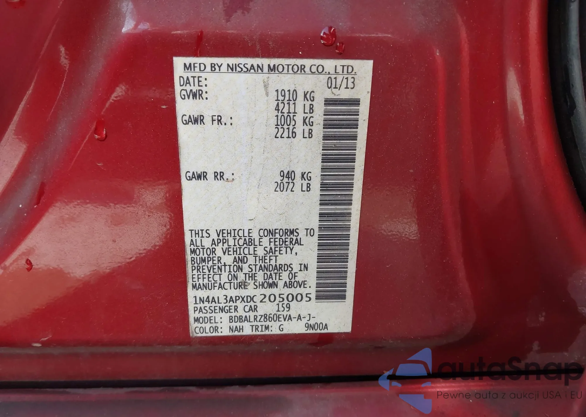 • VIN 1N4AL3APXDC205005