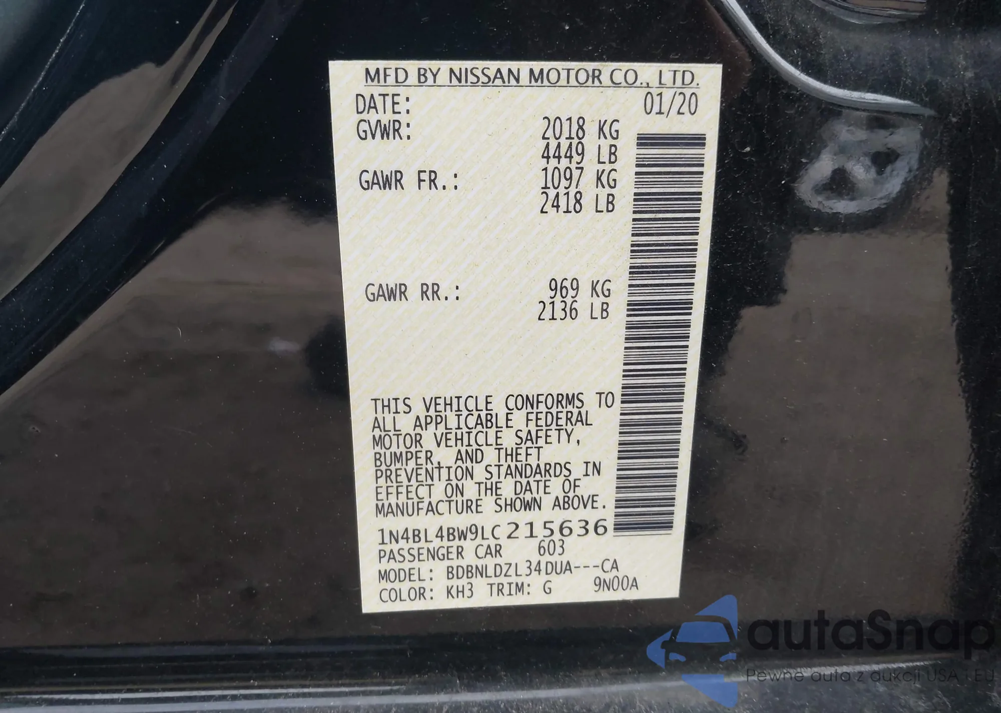 • VIN 1N4BL4BW9LC215636