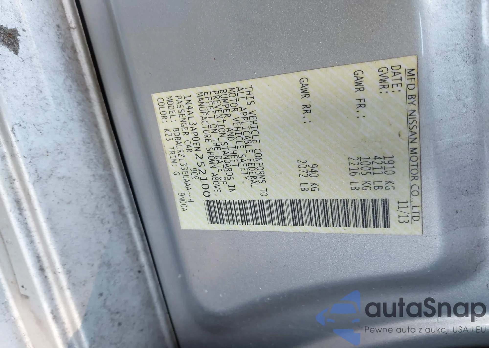 LOT: 44142737 VIN: 1N4AL3AP9DC190979
