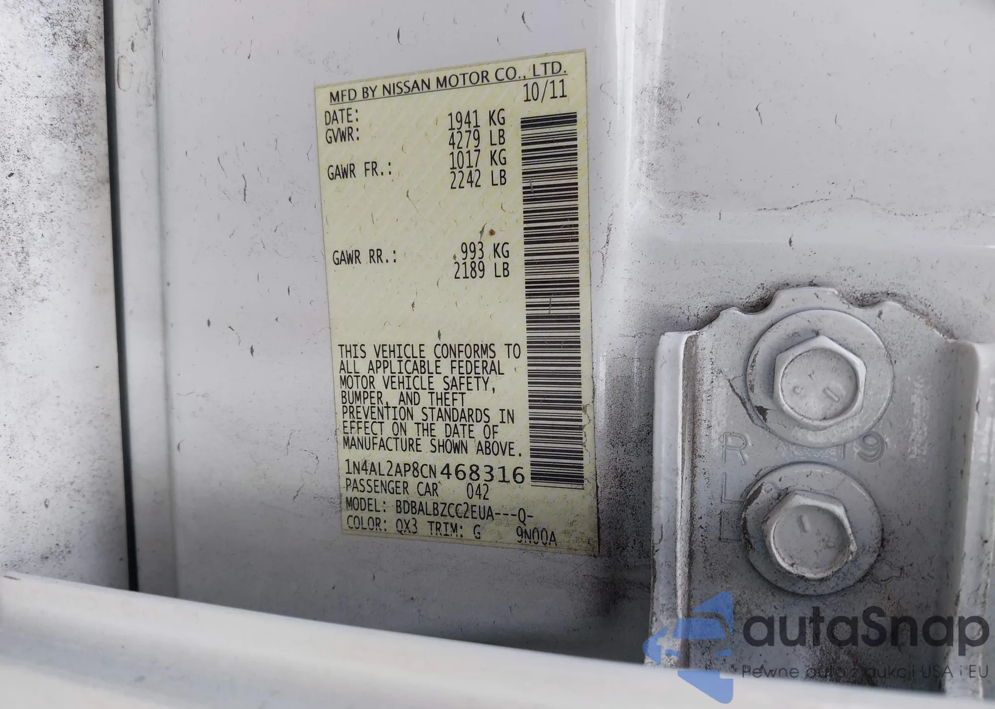 LOT: 44321786 VIN: 1N4AL2AP8CN468316