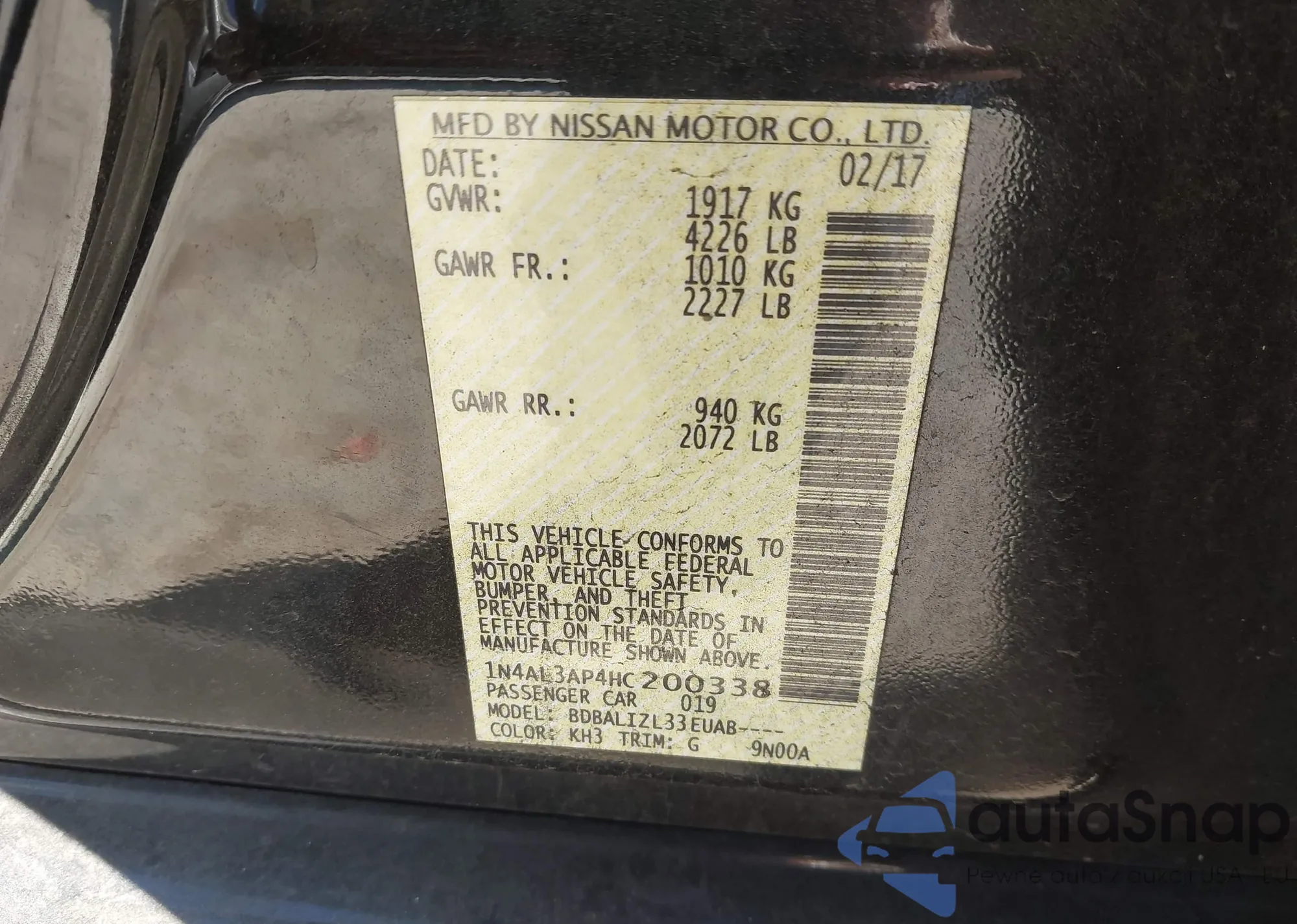 LOT: 44389562 VIN: 1N4AL3AP4HC200338
