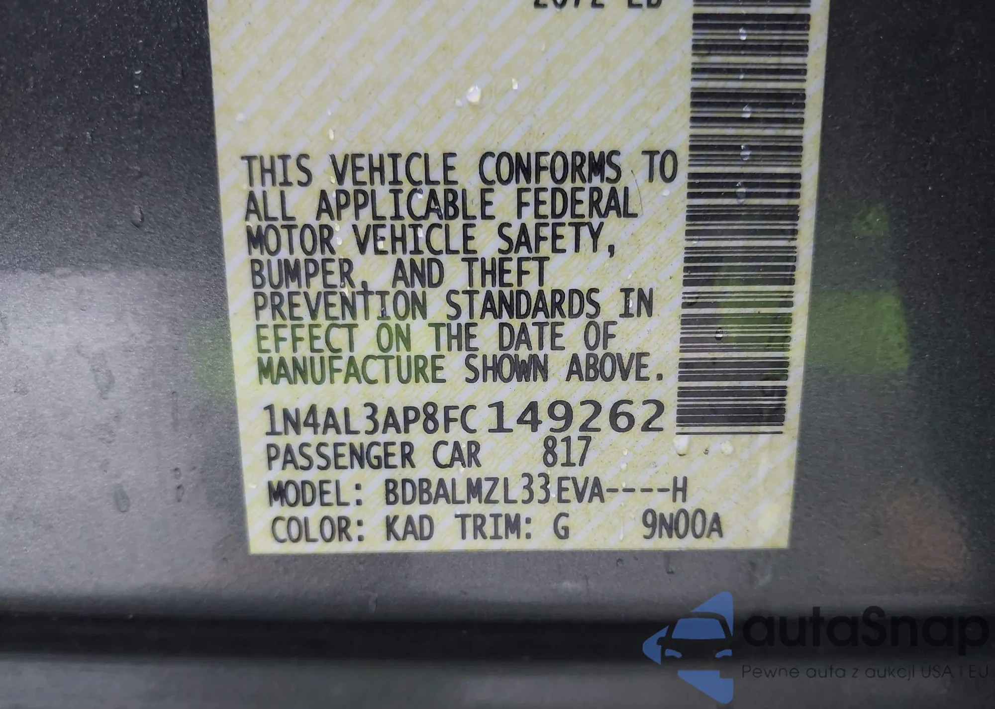 • VIN 1N4AL3AP8FC149262