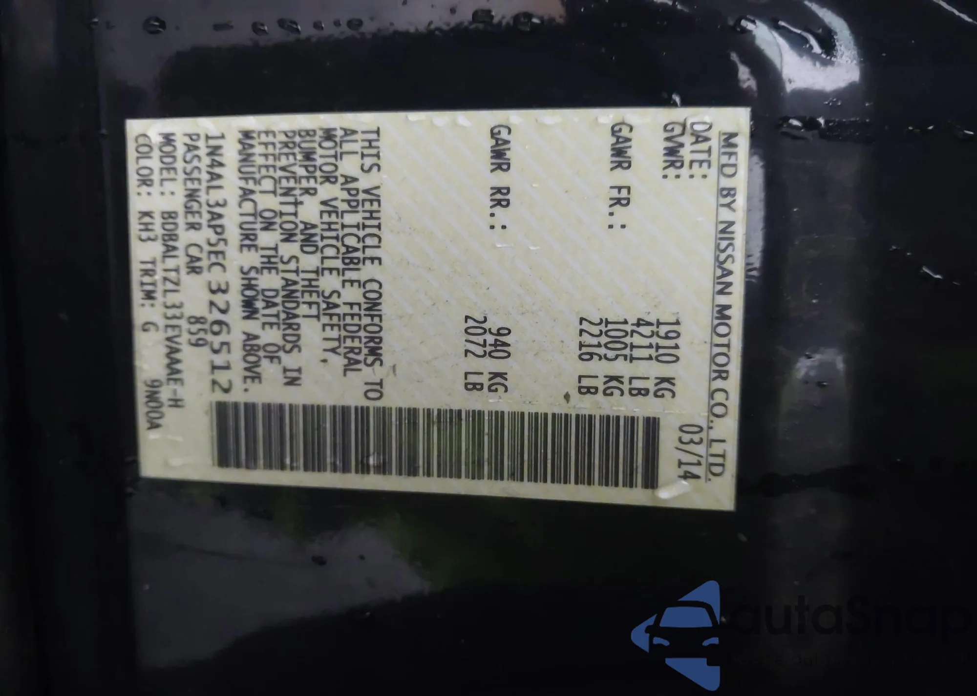 LOT: 44398826 VIN: 1N4AL3AP5EC326512