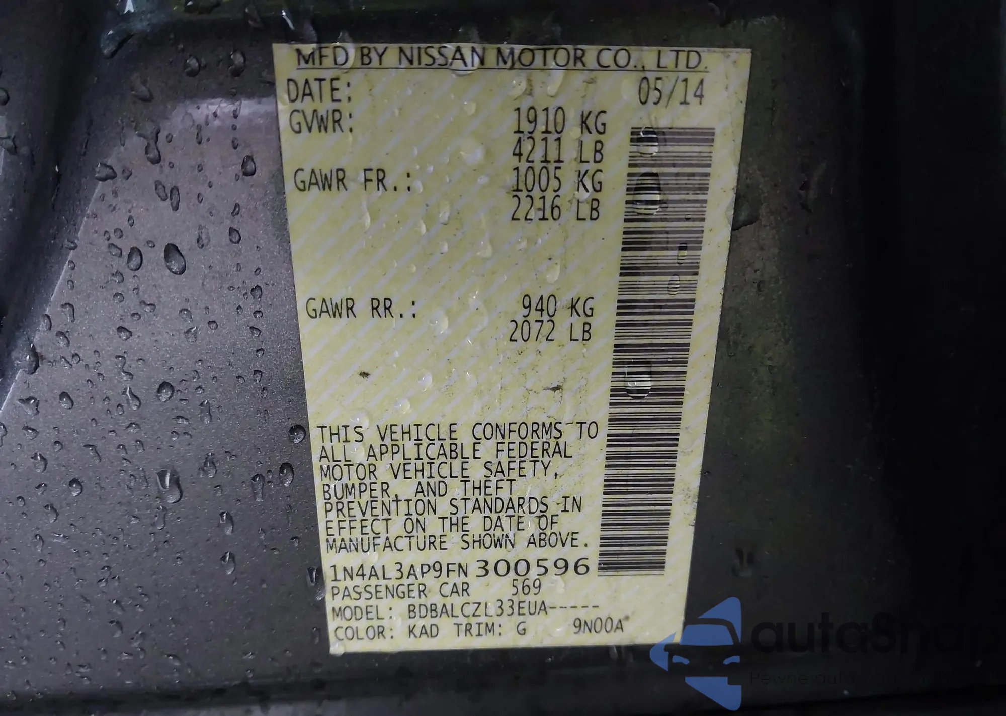 • VIN 1N4AL3AP9FN300596