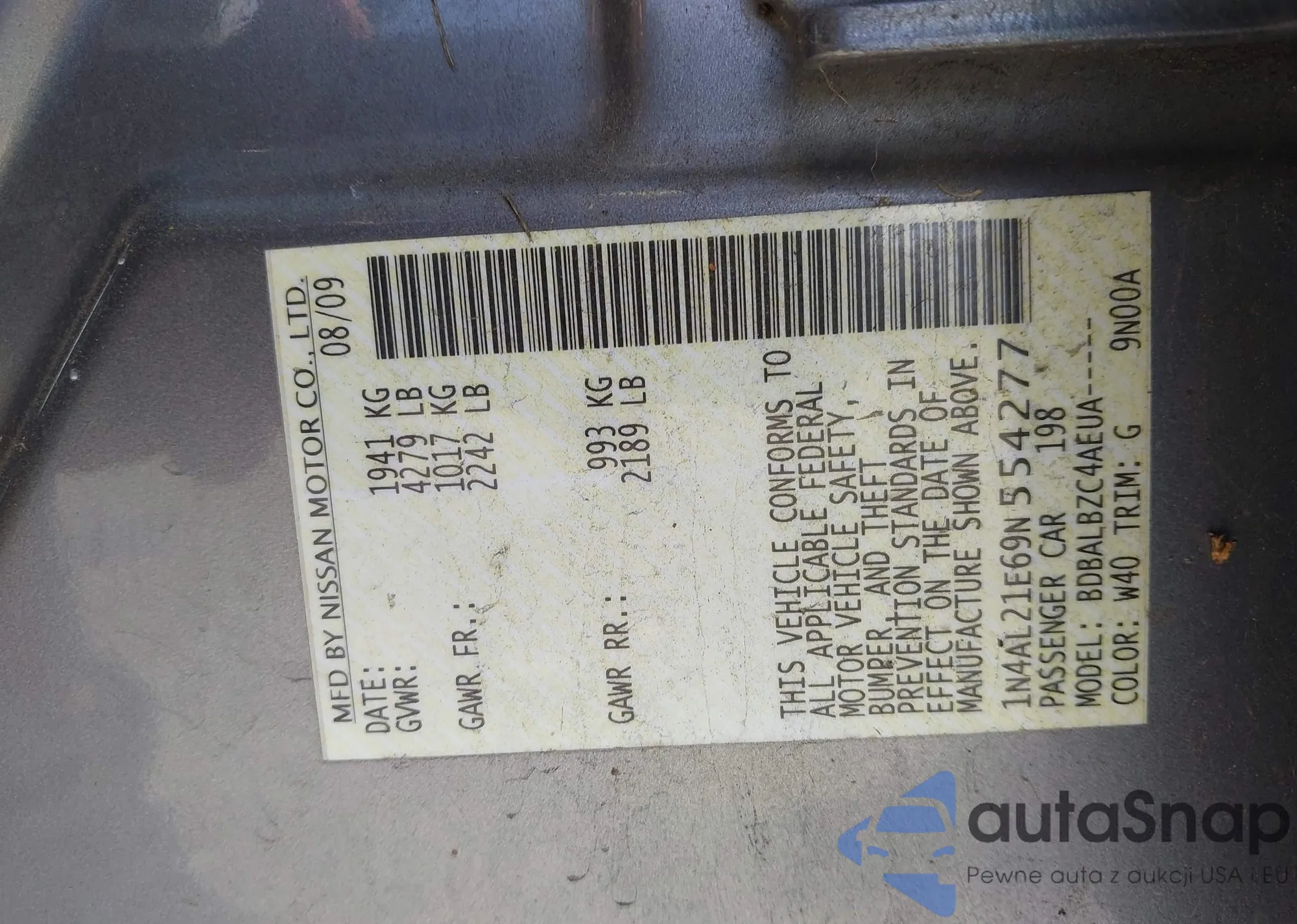 LOT: 44433532 VIN: 1N4AL21E69N554277