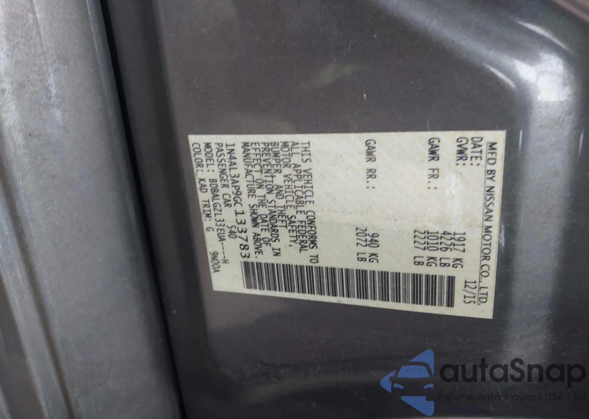 • VIN 1N4AL3AP9GC133783