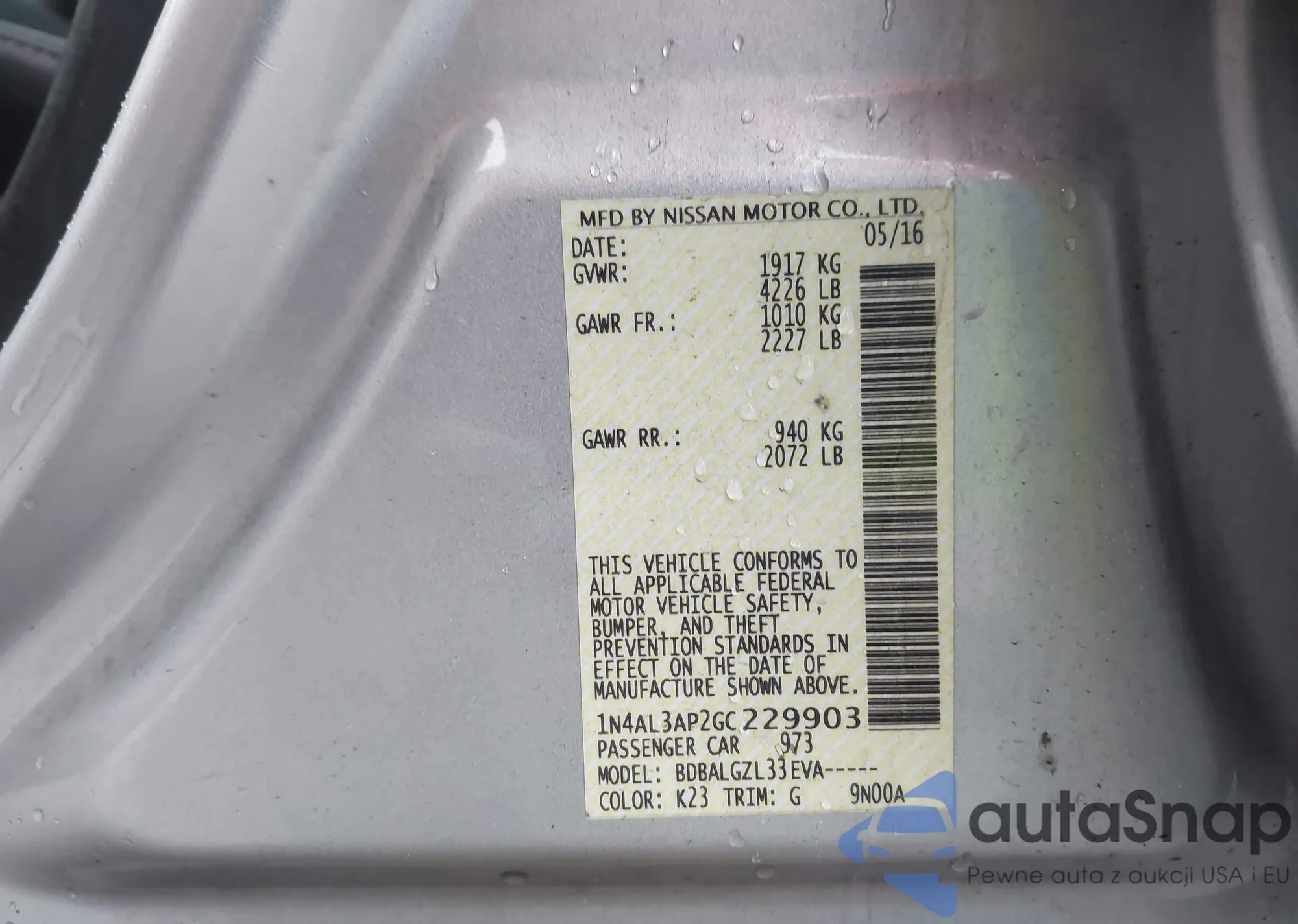 • VIN 1N4AL3AP2GC229903