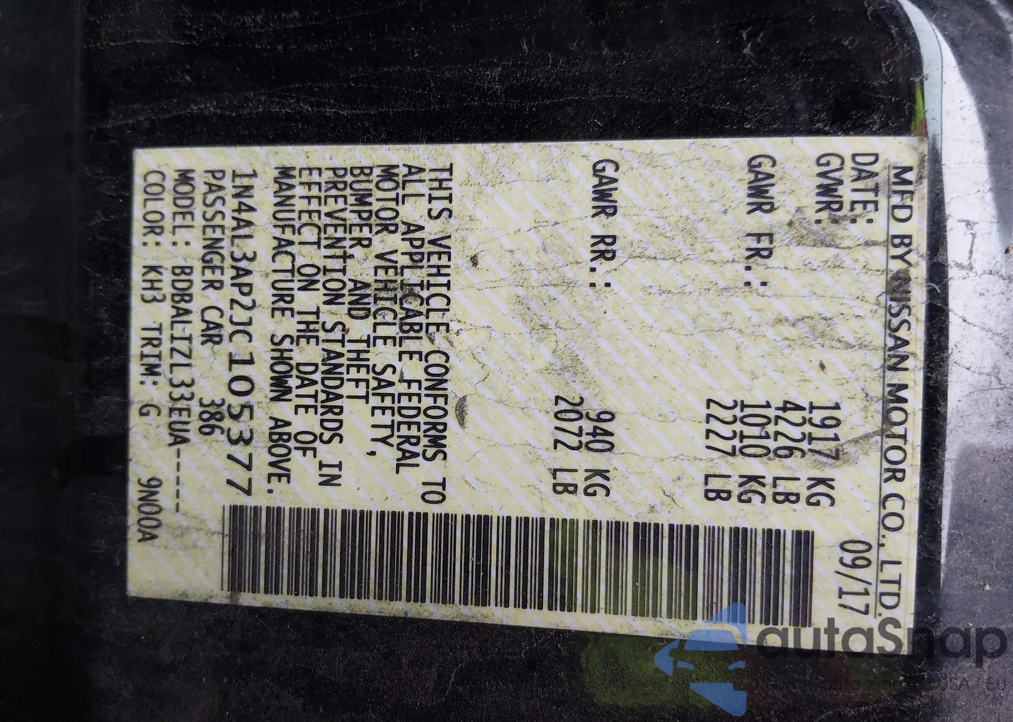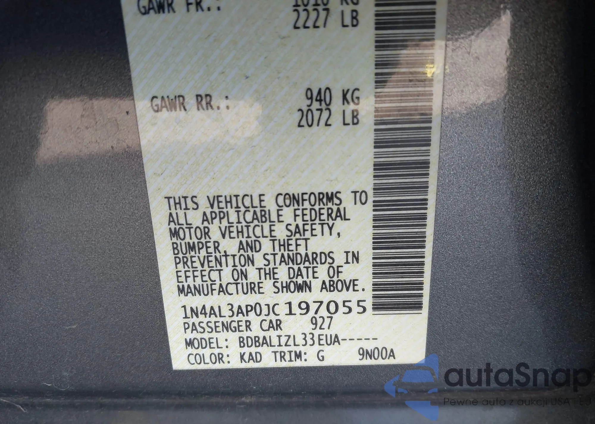 LOT: 44361438 VIN: 1N4AL3AP0JC197055