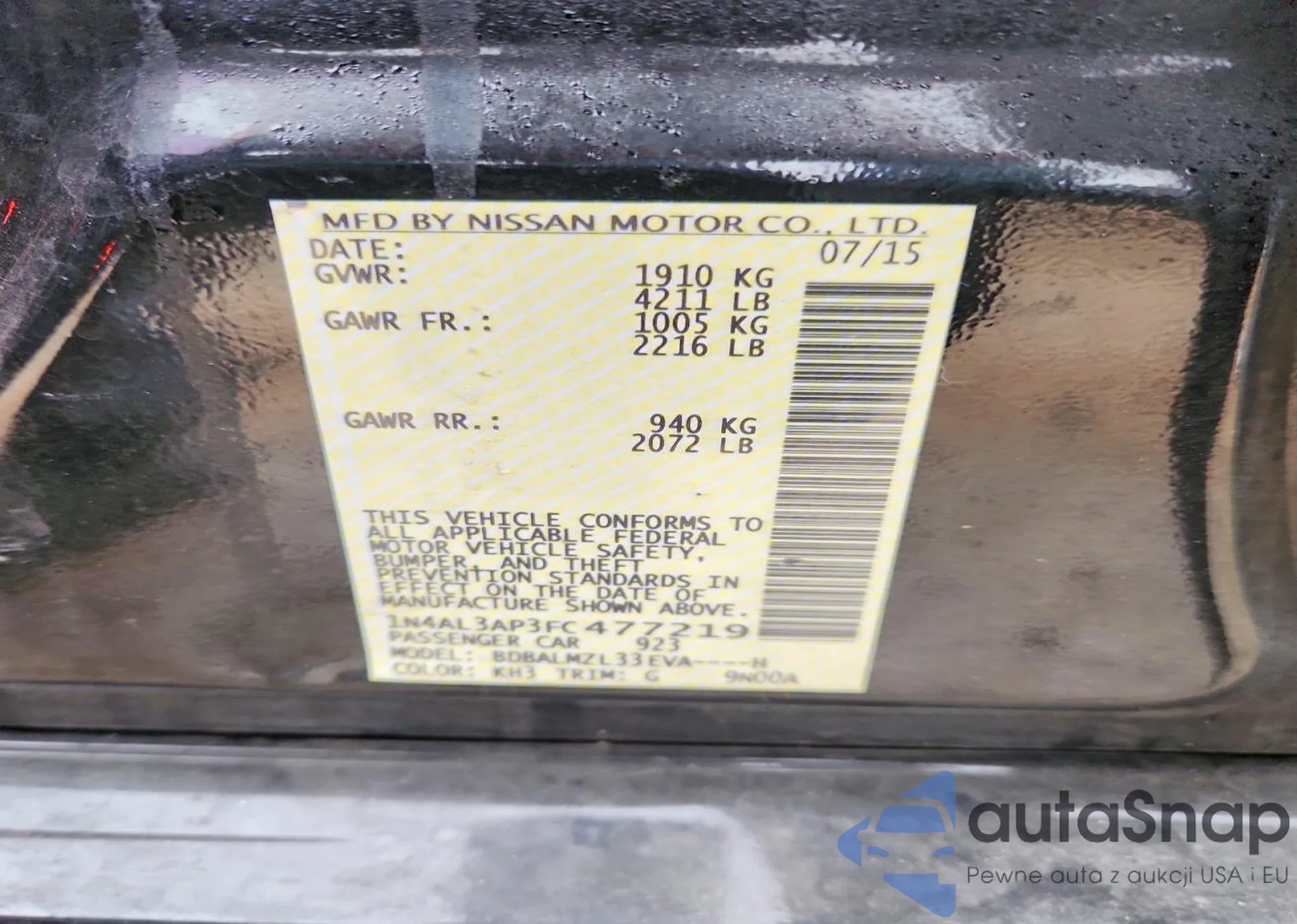 LOT: 97559495 VIN: 1N4AL3AP3FC477219