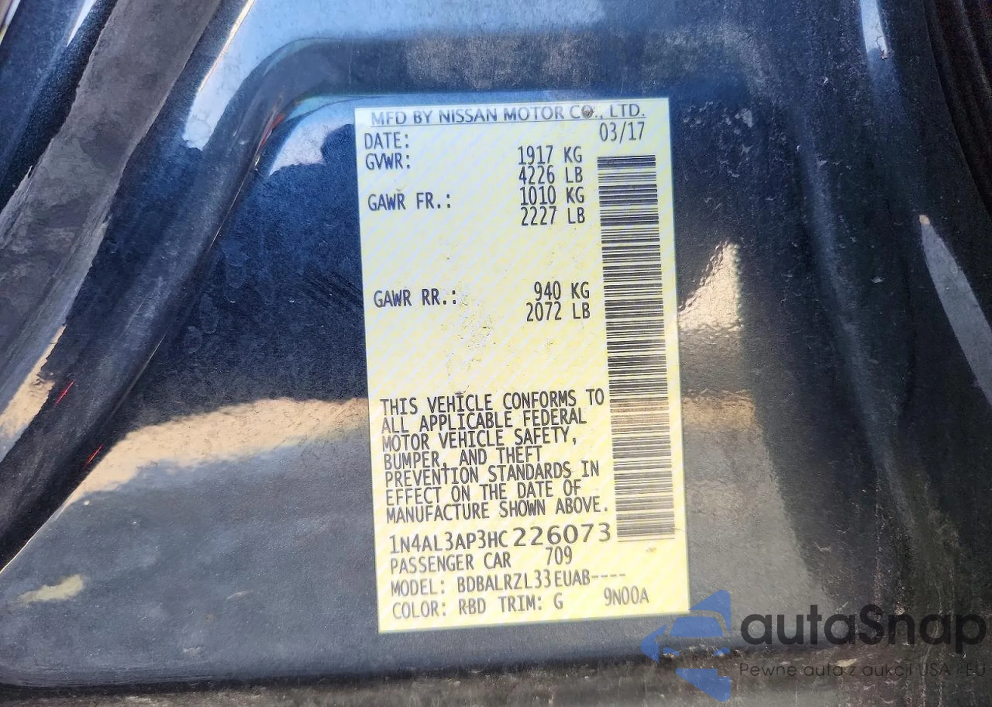 LOT: 76618475 VIN: 1N4AL3AP3HC226073