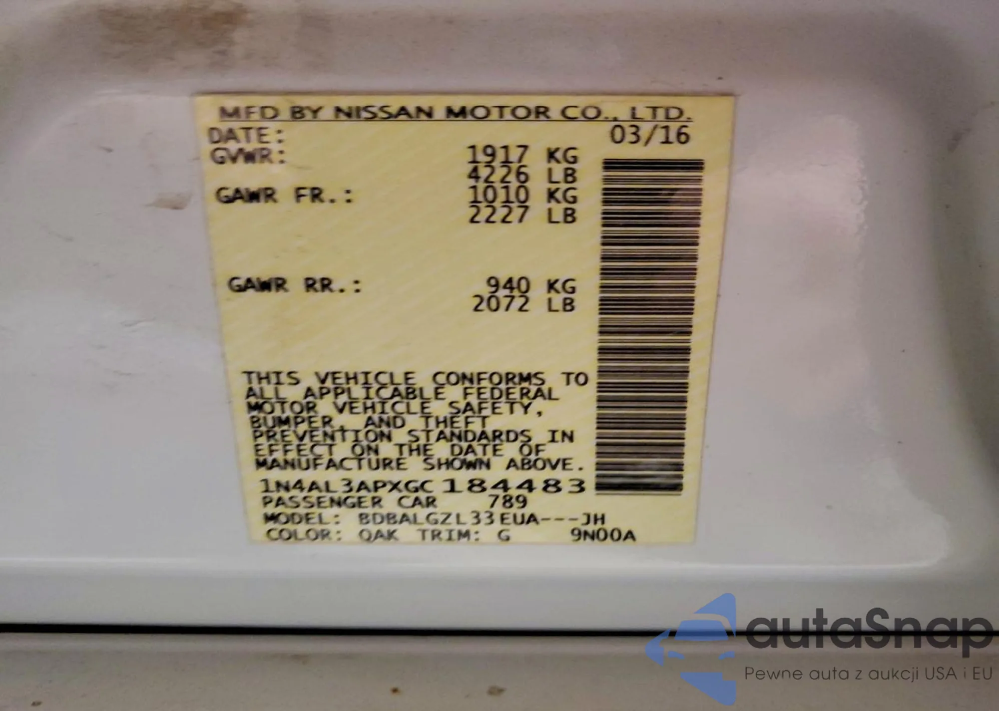 LOT: 75762975 VIN: 1N4AL3APXGC184483