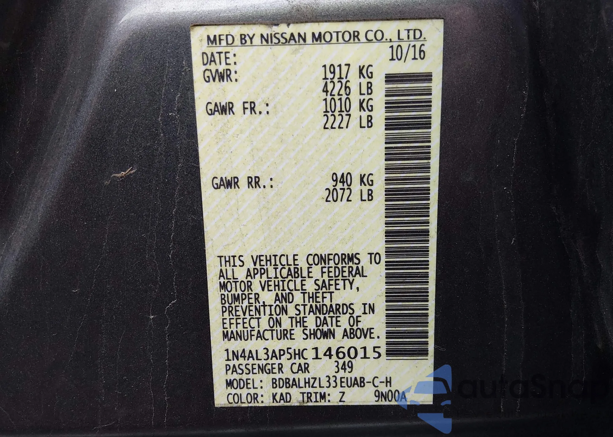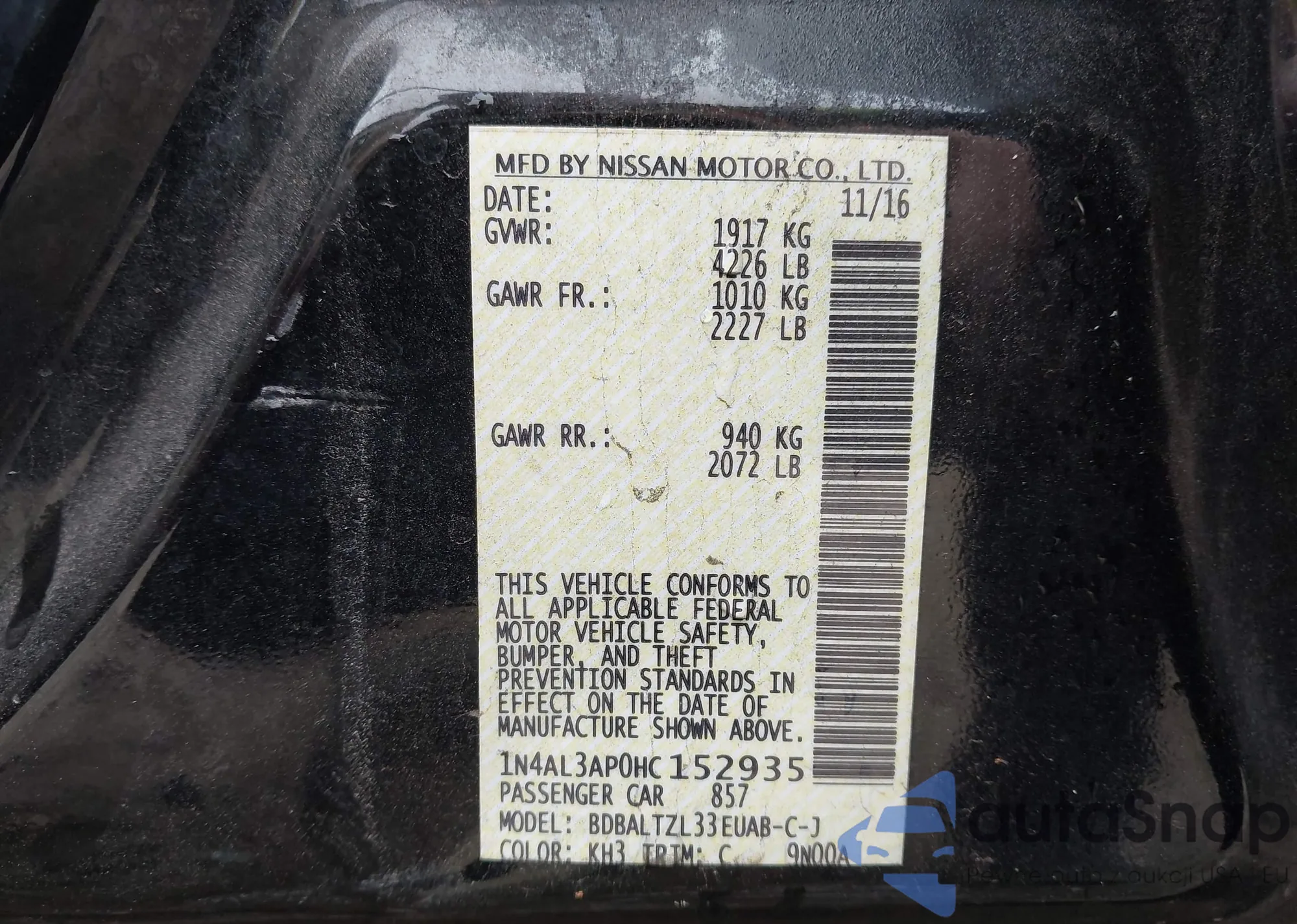 LOT: 44079177 VIN: 1N4AL3AP0HC152935