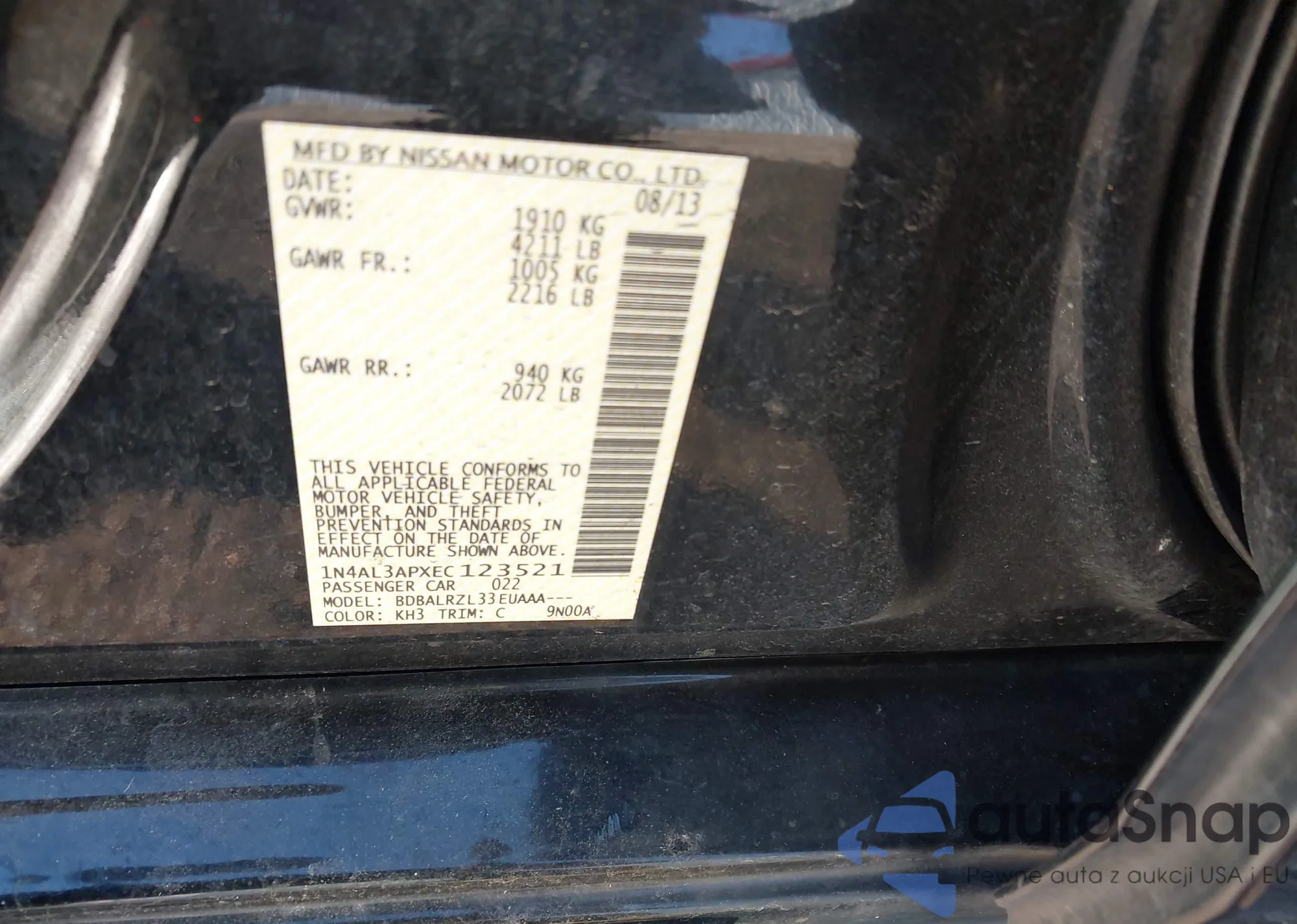 LOT: 44243437 VIN: 1N4AL3APXEC123521