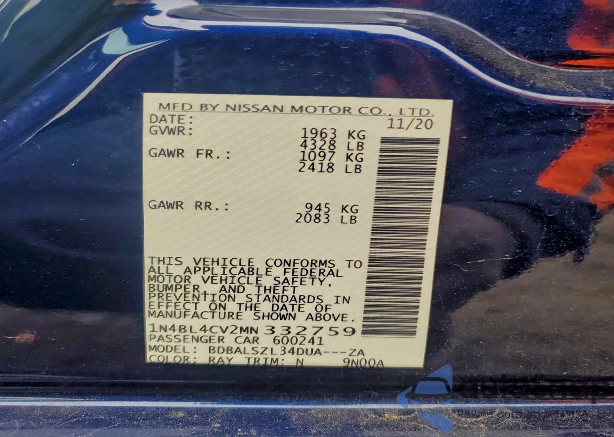 LOT: 44104528 VIN: 1N4BL4DW7MN313695