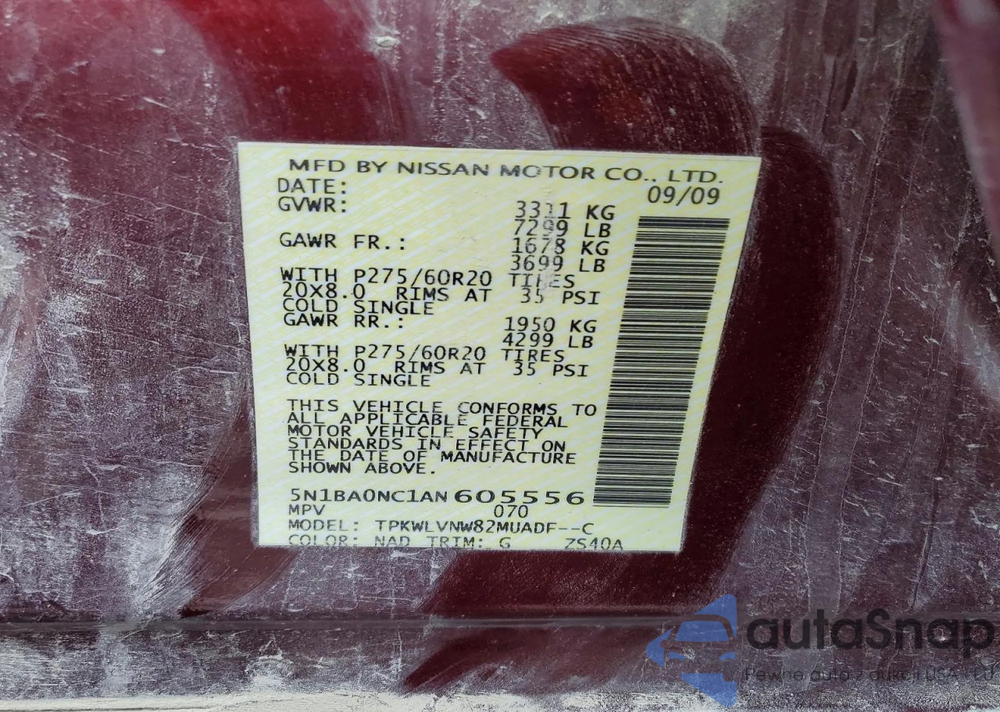 LOT: 44117001 VIN: JN8AY2CD8M9661255