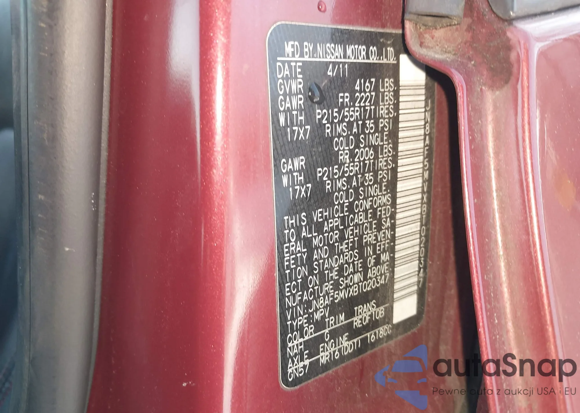 LOT: 44479825 VIN: JN8AF5MVXBT020347