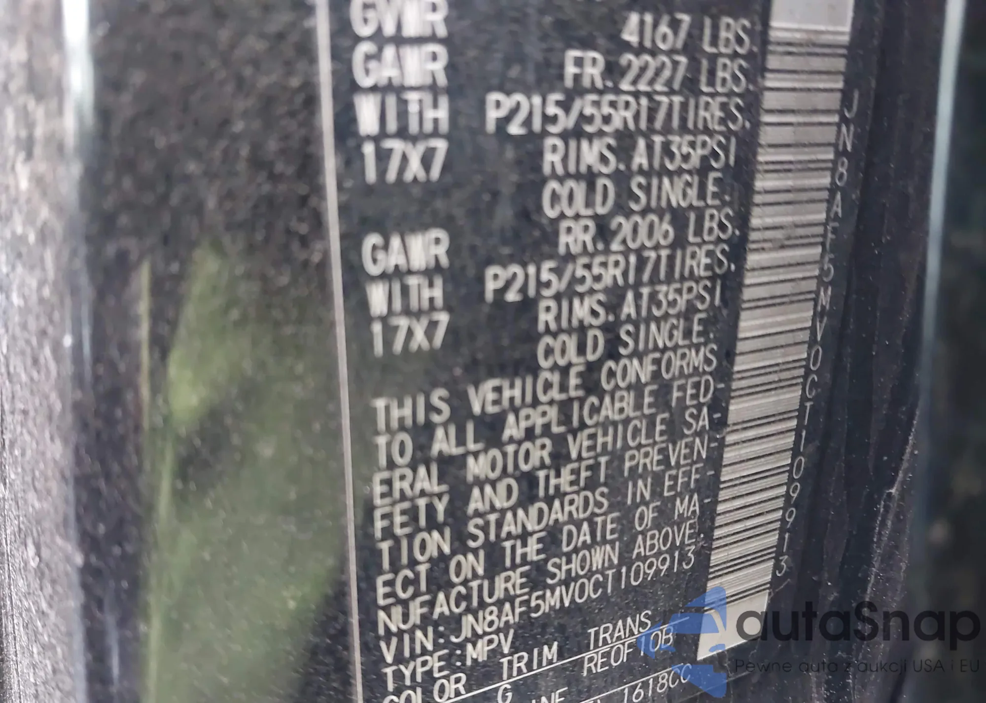LOT: 38328223 VIN: JN8AF5MV0CT109913