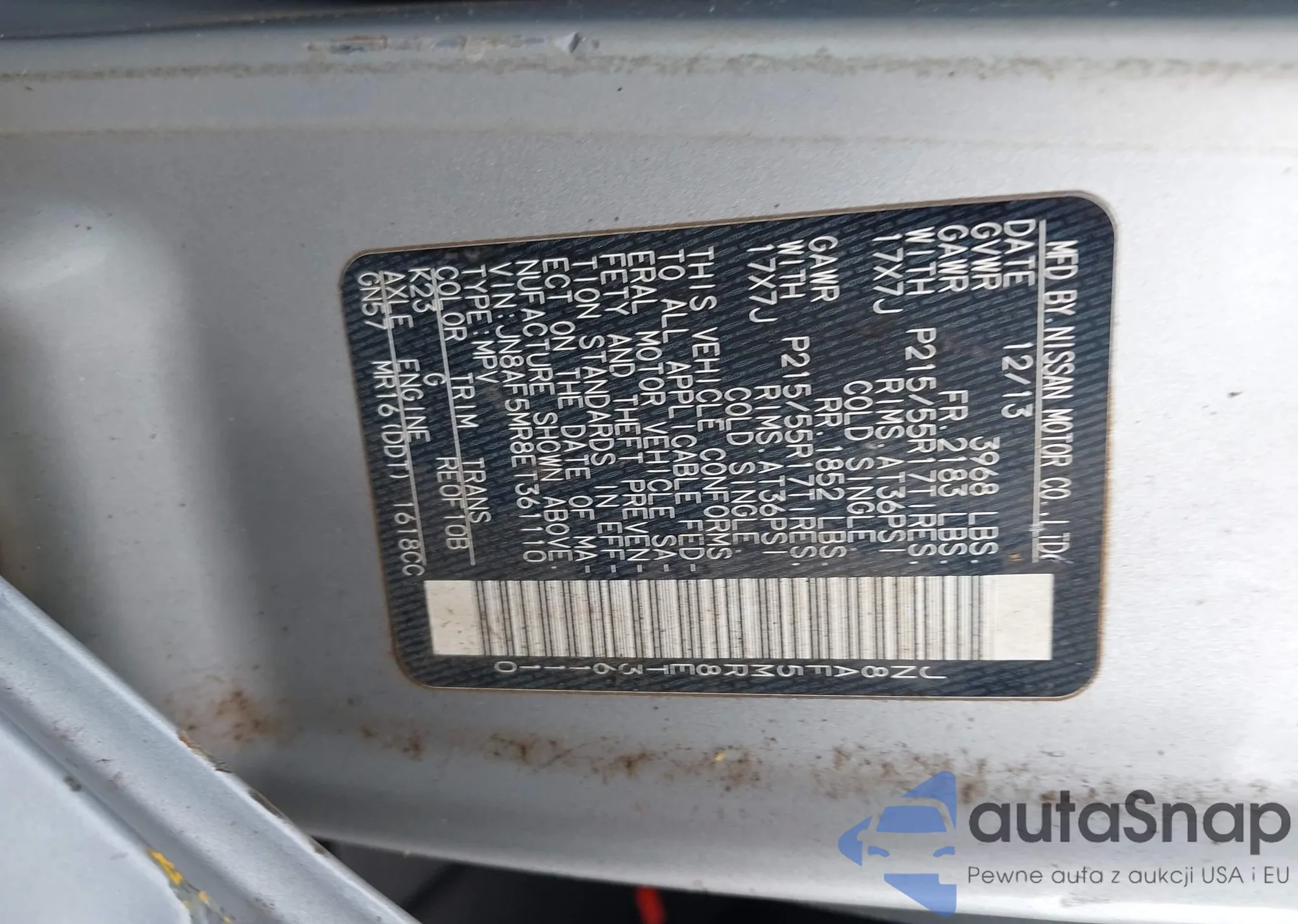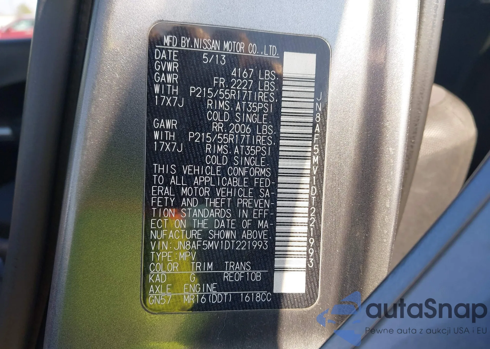 LOT: 44487992 VIN: JN8AF5MV1DT221993