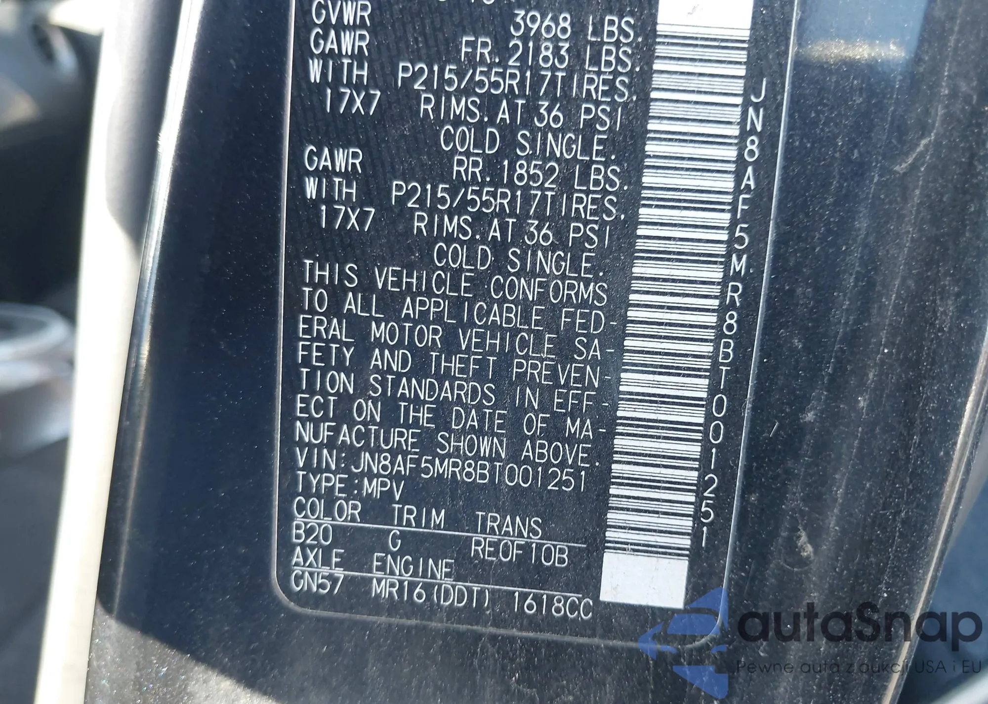 • VIN JN8AF5MR8BT001251