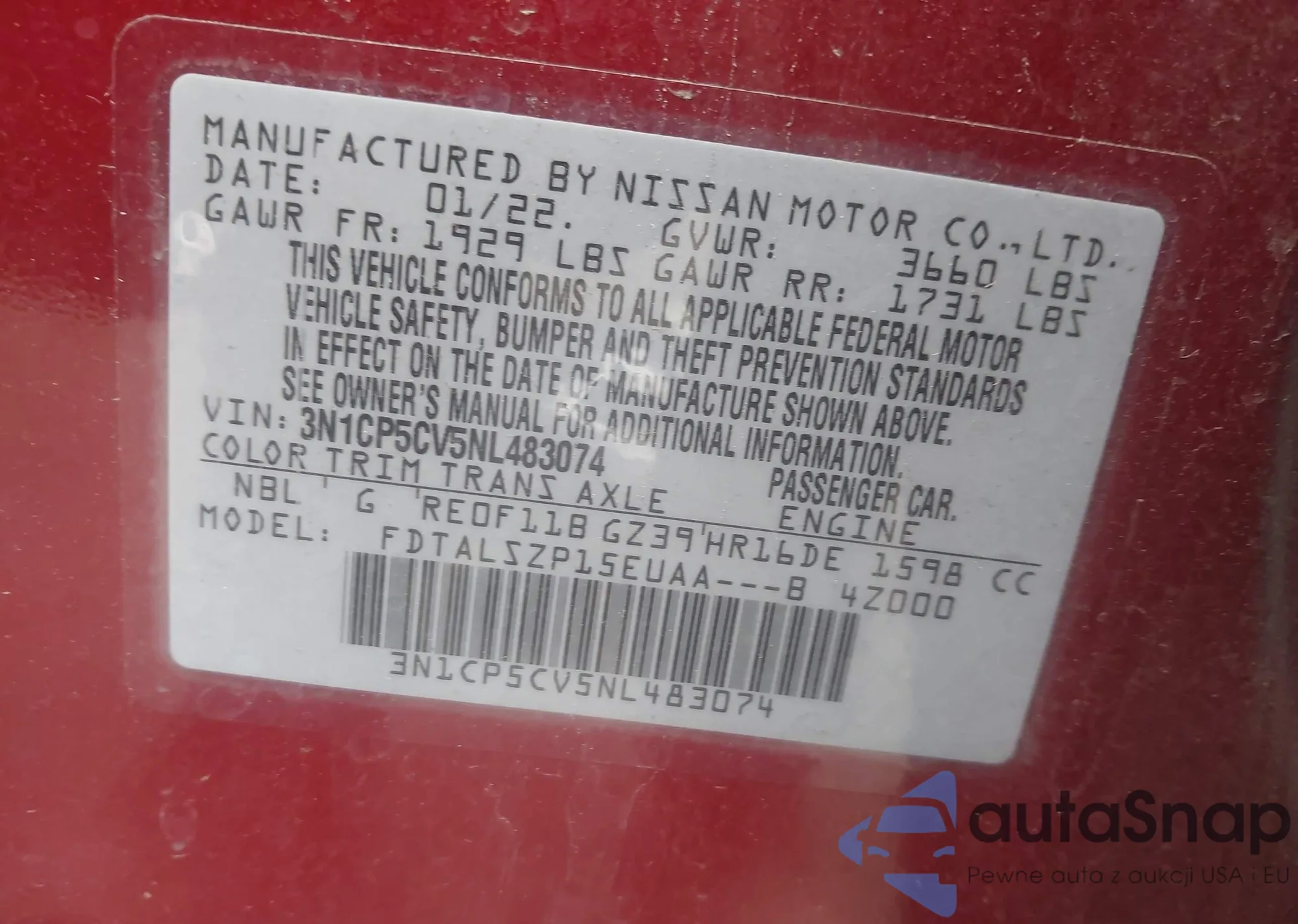 • VIN 3N1CP5CV5NL483074