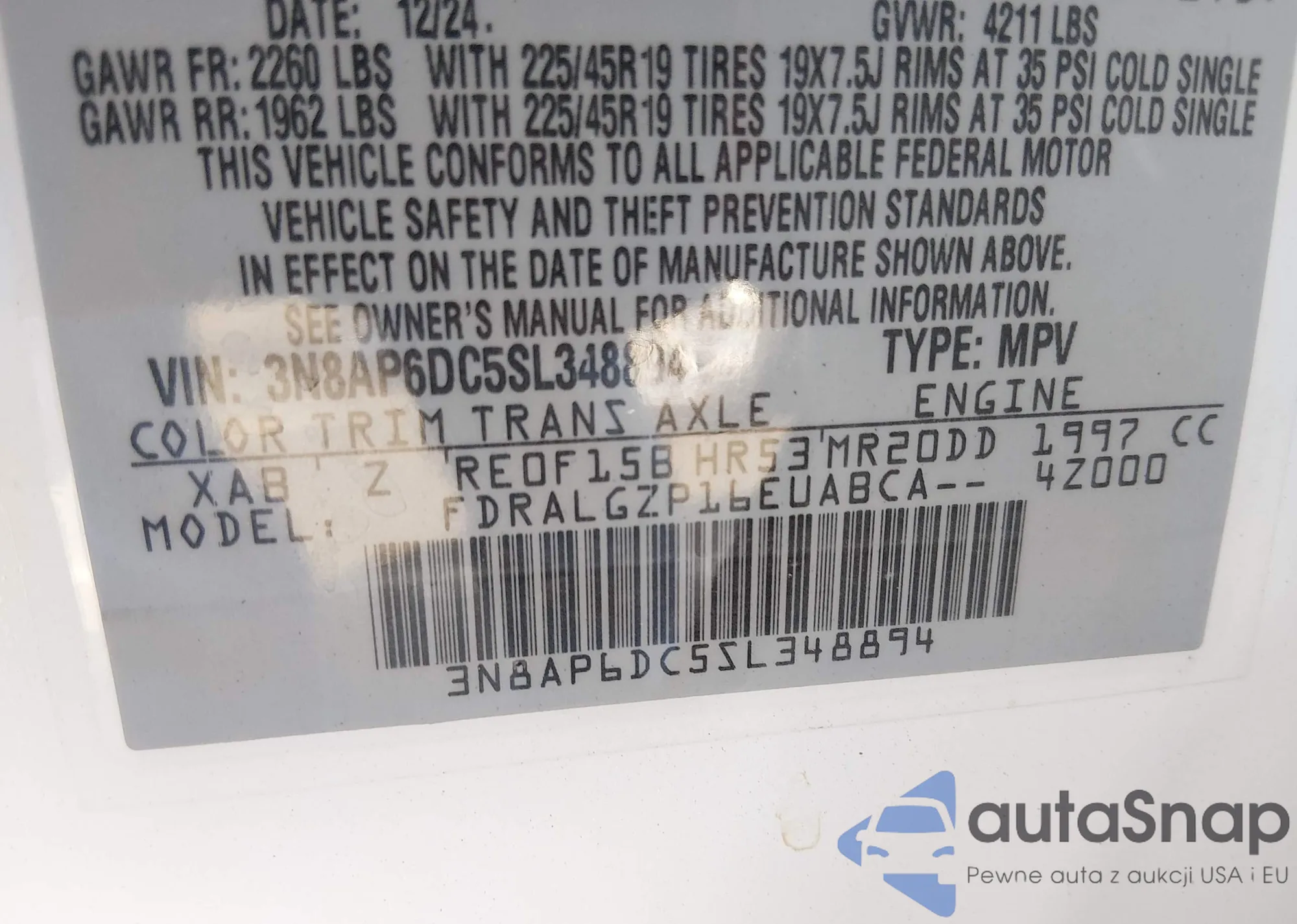 • VIN 3N8AP6DC5SL348894