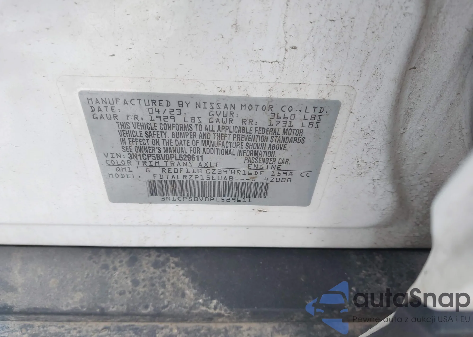 • VIN 3N1CP5BV0PL529611