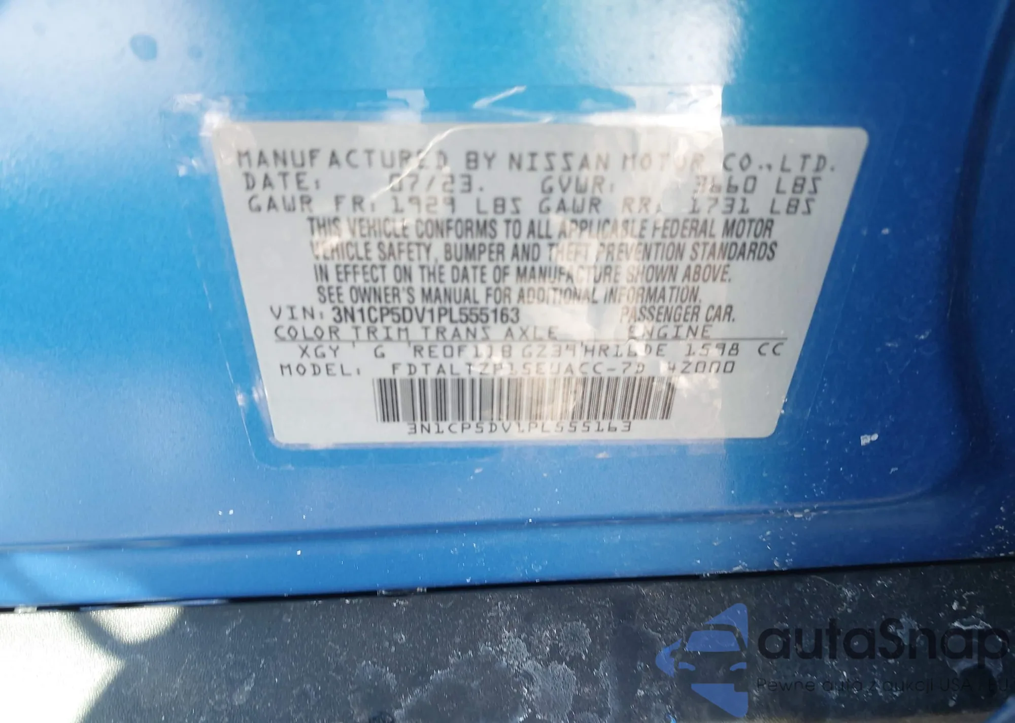 LOT: 44203943 VIN: 3N1CP5DV1PL555163