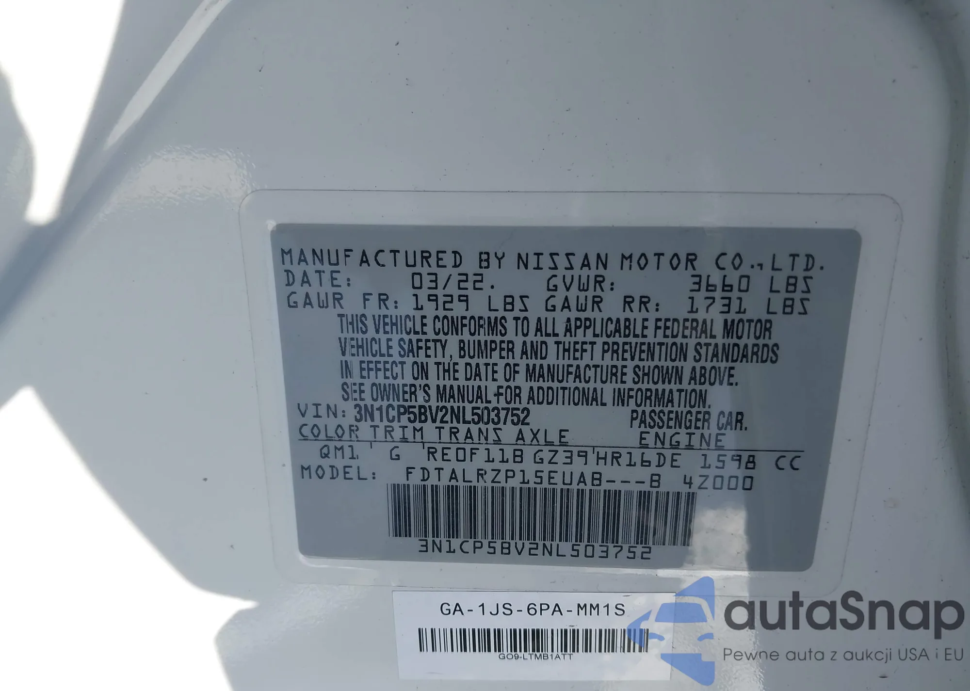 • VIN 3N1CP5BV2NL503752