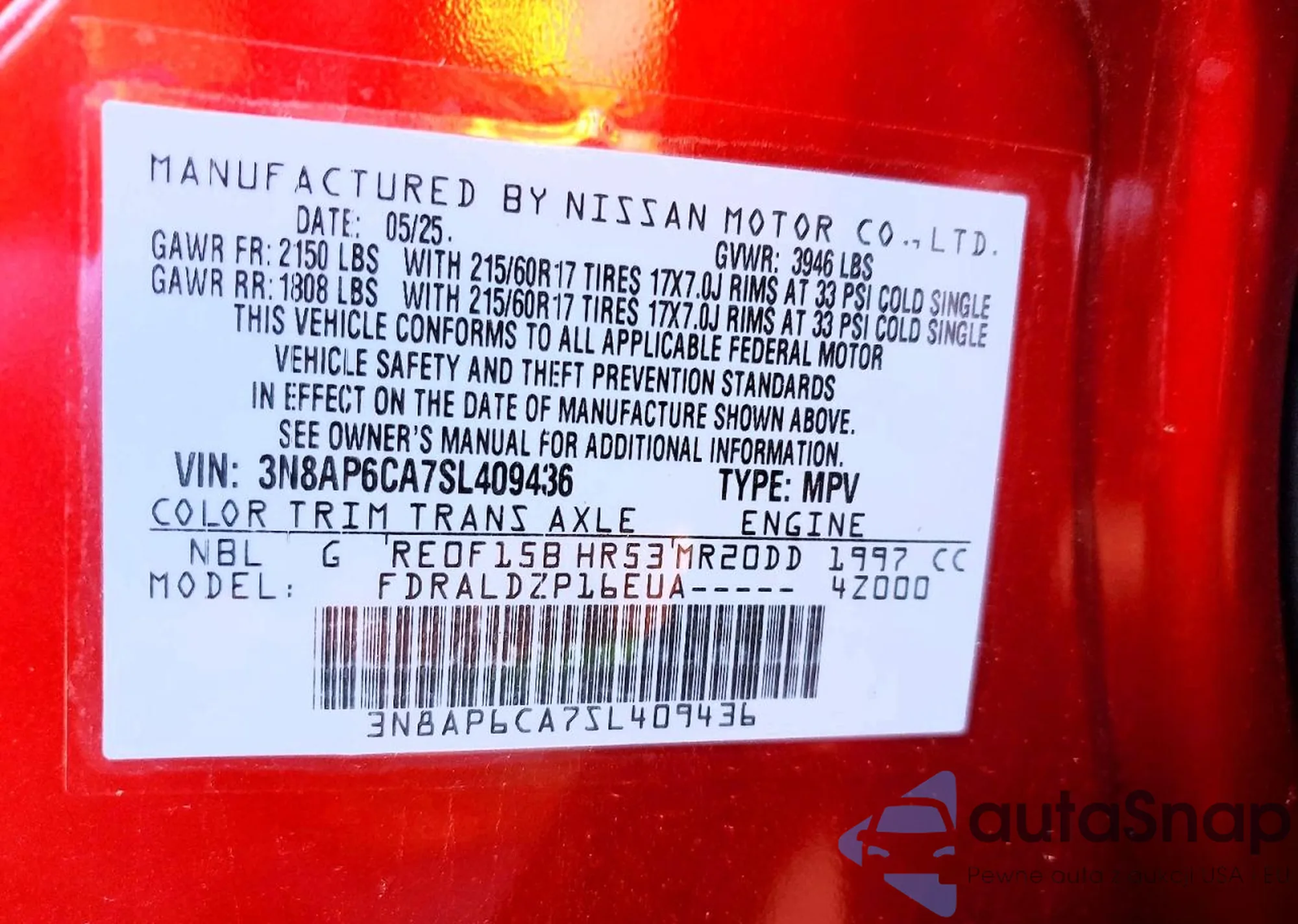 • VIN 3N8AP6CA7SL409436