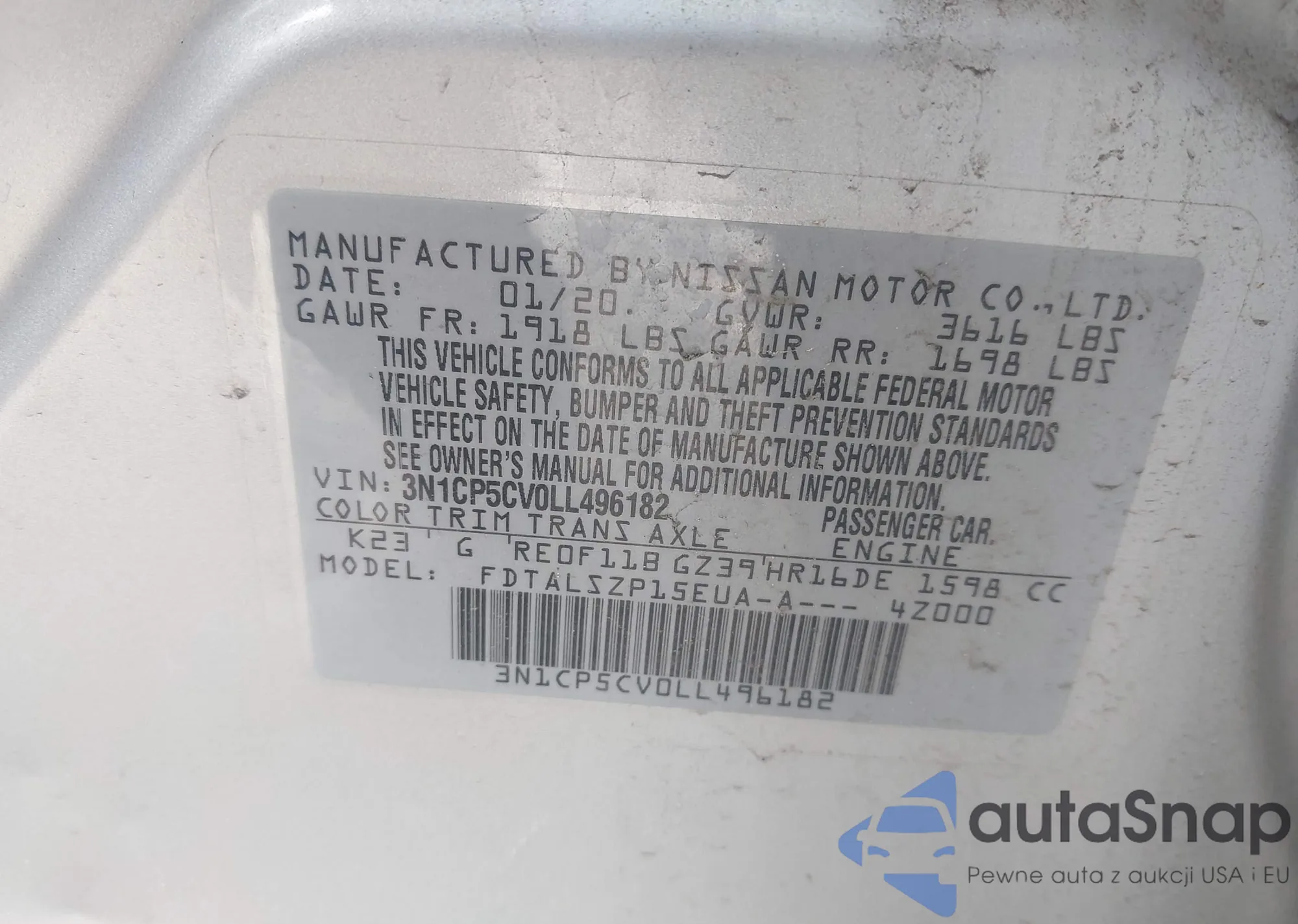 • VIN 3N1CP5DV4LL531868