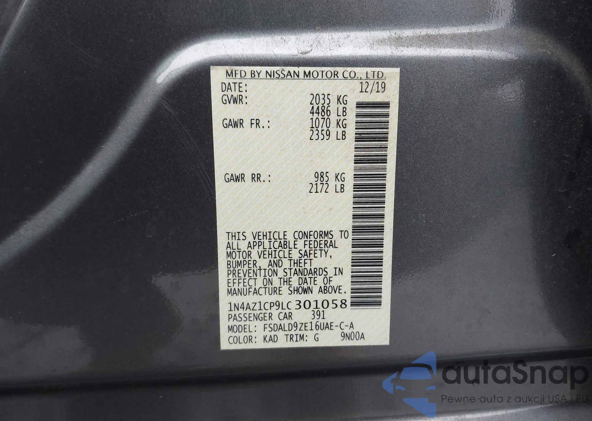 • VIN 1N4AZ1CP9LC301058