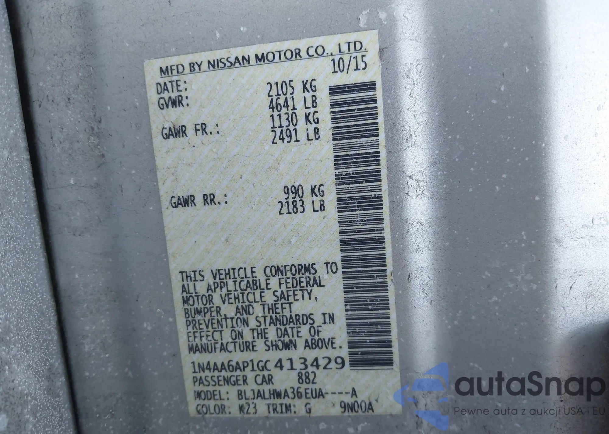 • VIN 1N4AA6AP1GC413429
