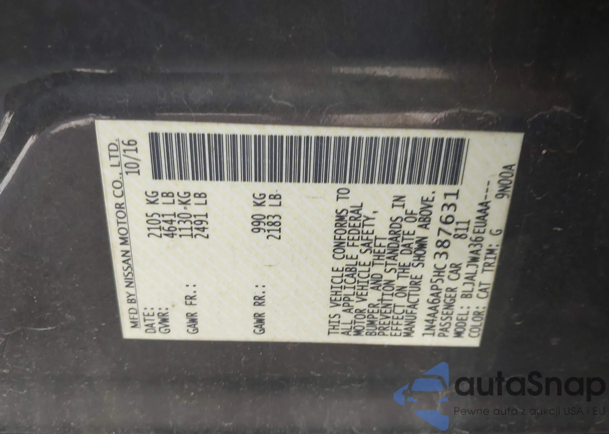 • VIN 1N4AA6AP5HC387631