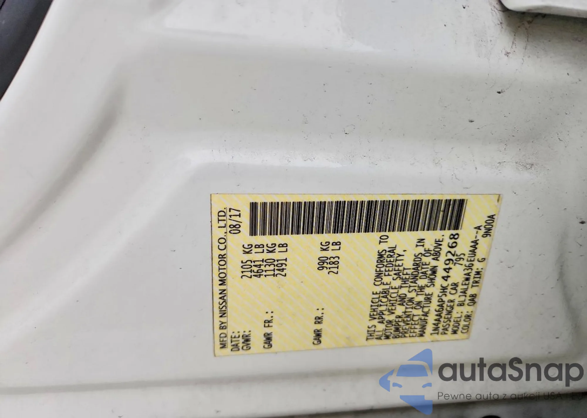 LOT: 79037345 VIN: 1N4AA6AP7HC435873
