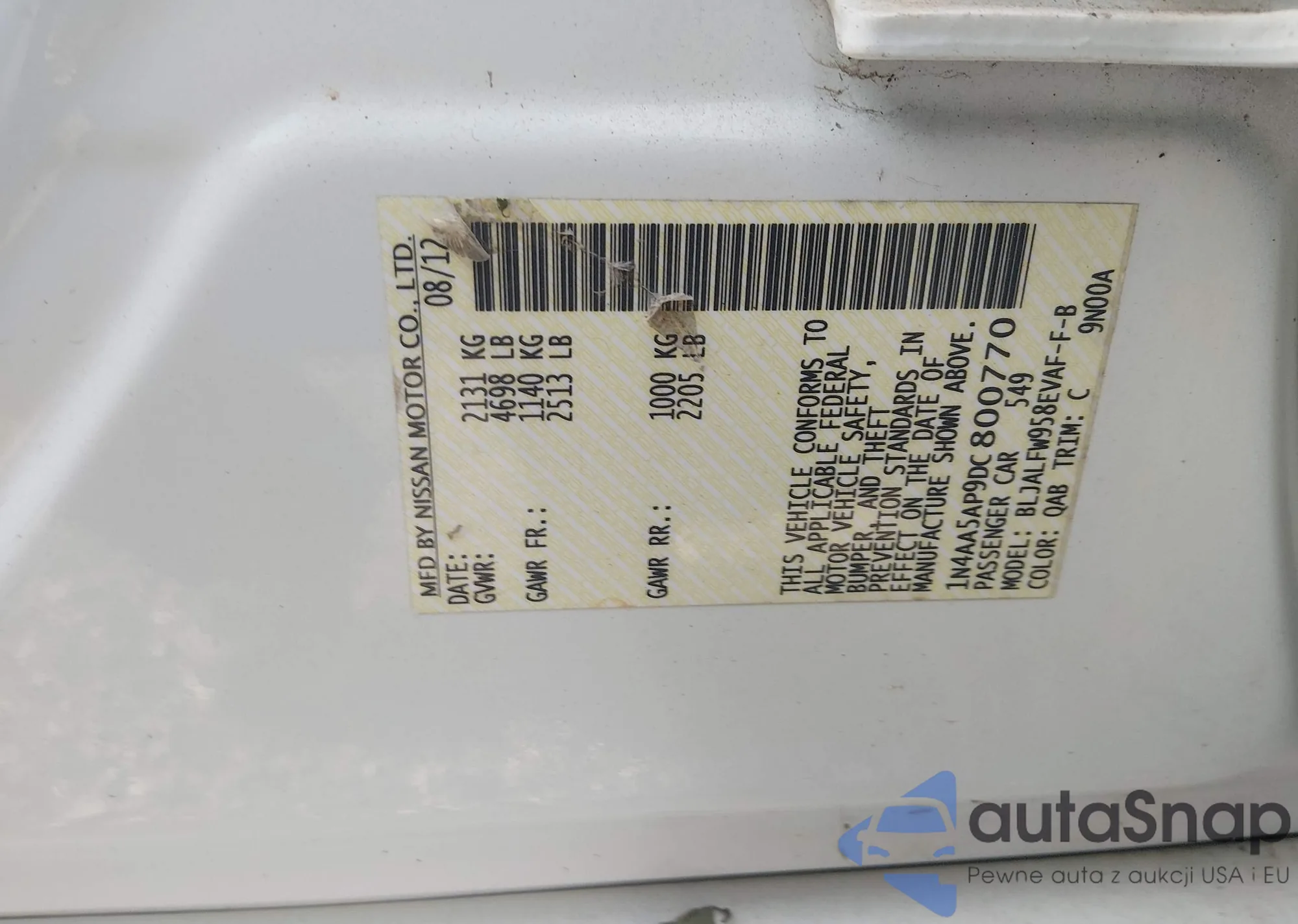 • VIN 1N4AA5AP9DC800770