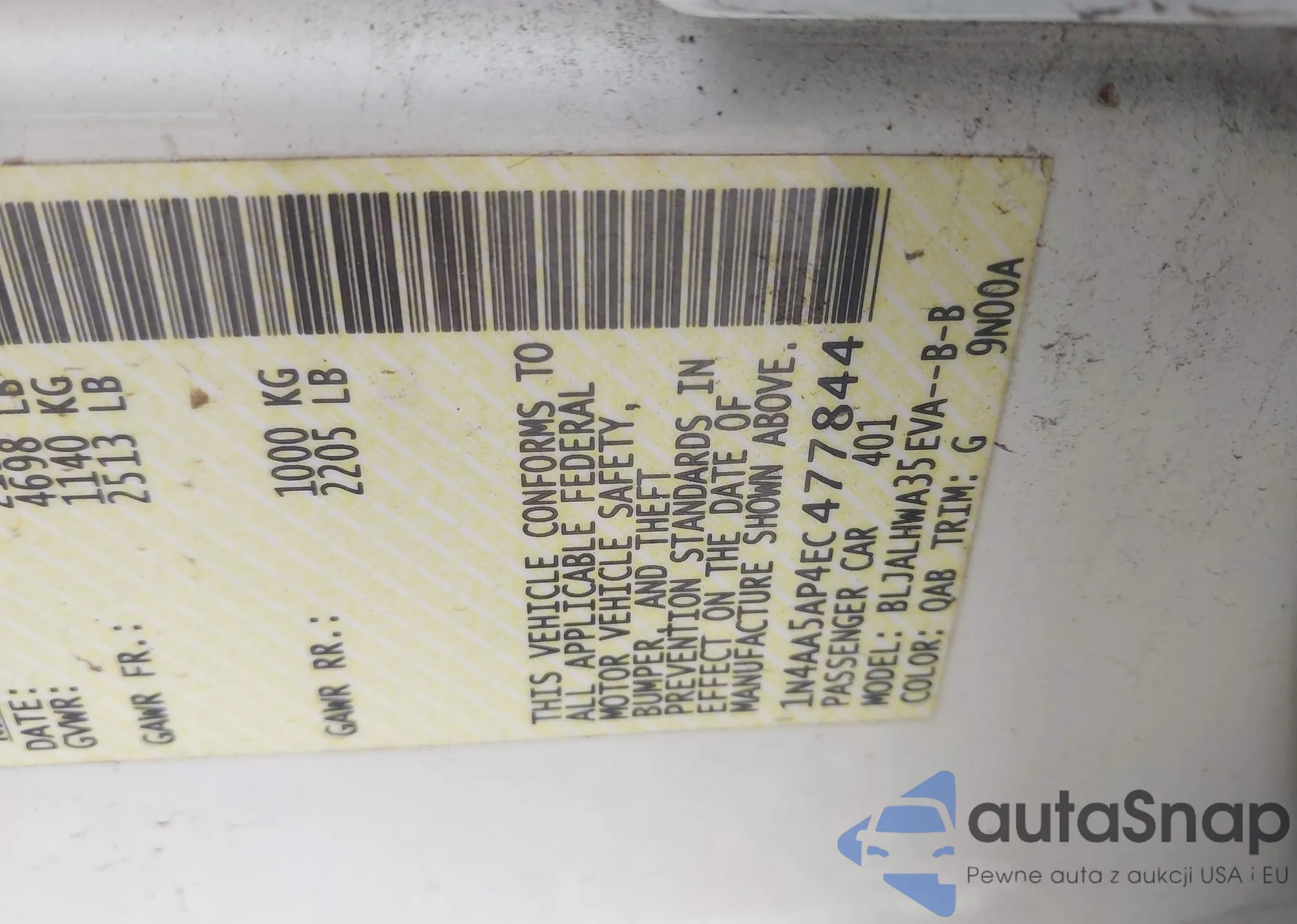 • VIN 1N4AA5AP4EC477844