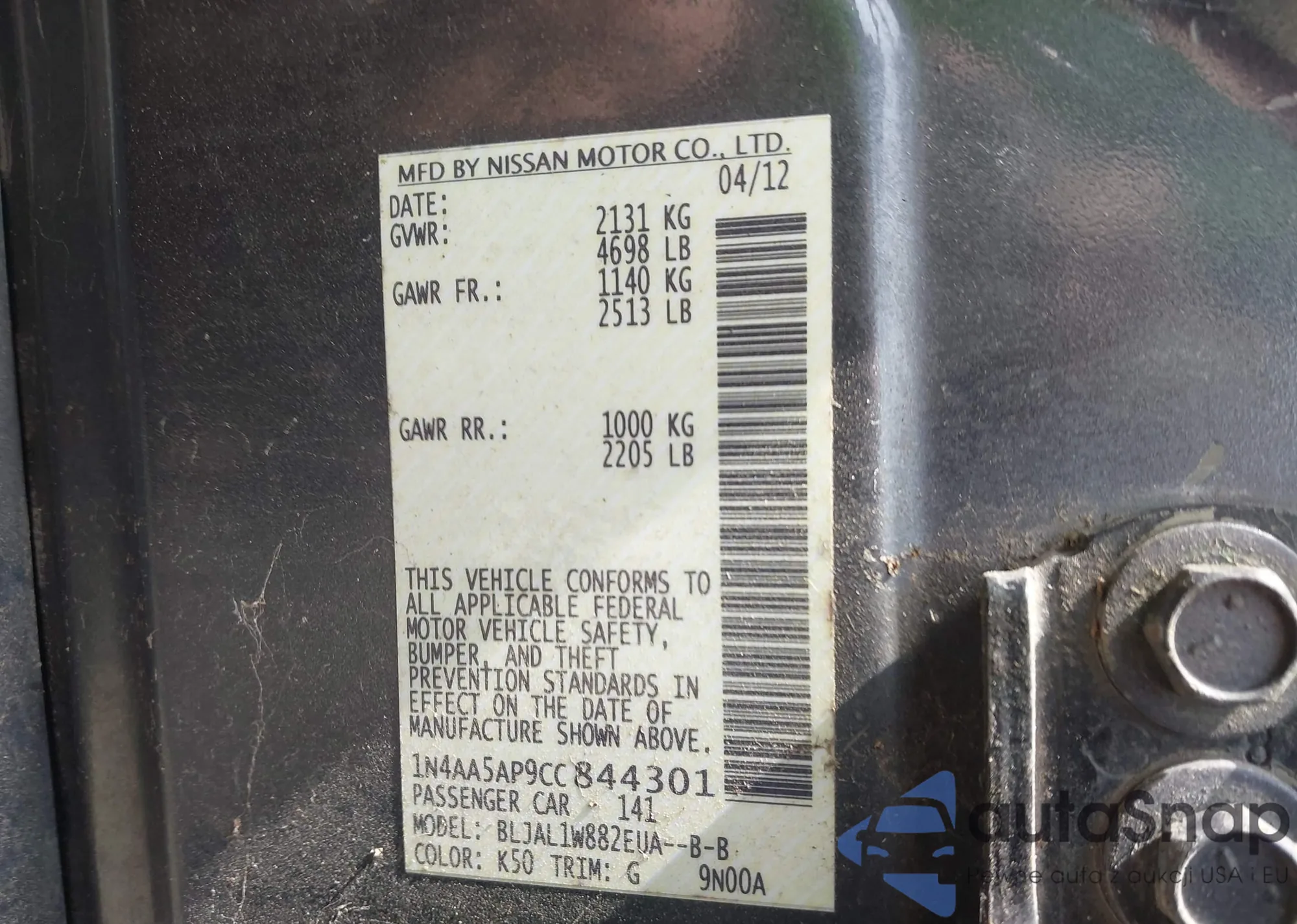 • VIN 1N4AA5AP9CC844301