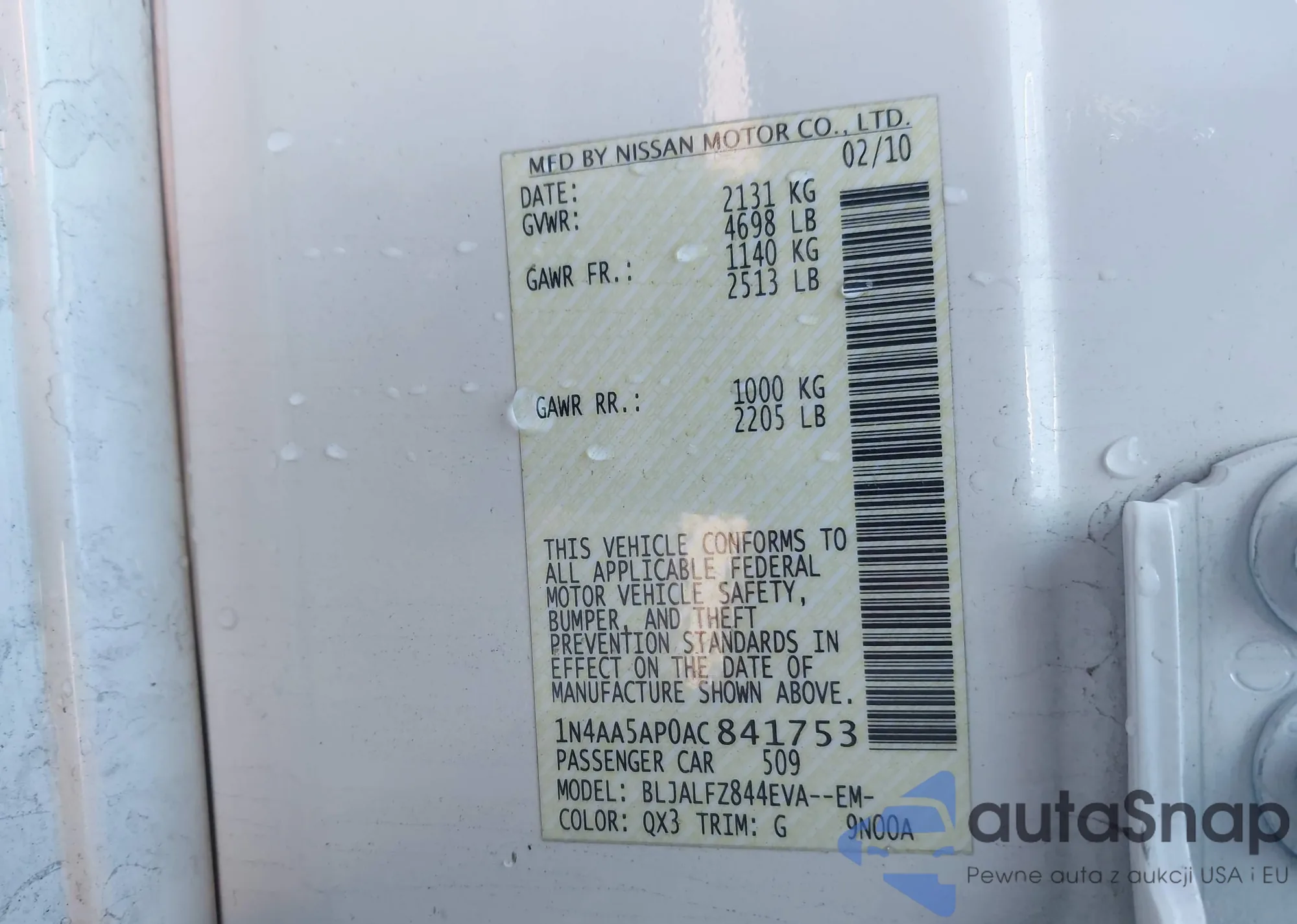 • VIN 1N4AA5AP9BC841073