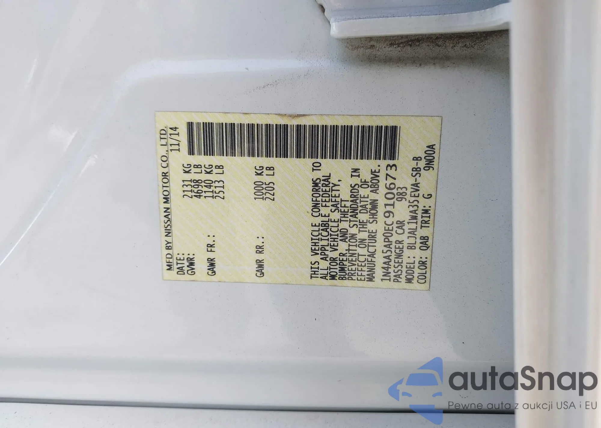 • VIN 1N4AA5AP0EC910673