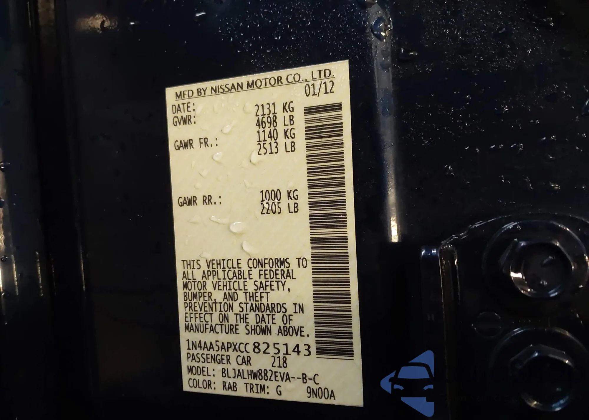 LOT: 44480403 VIN: 1N4AA5AP8BC867759