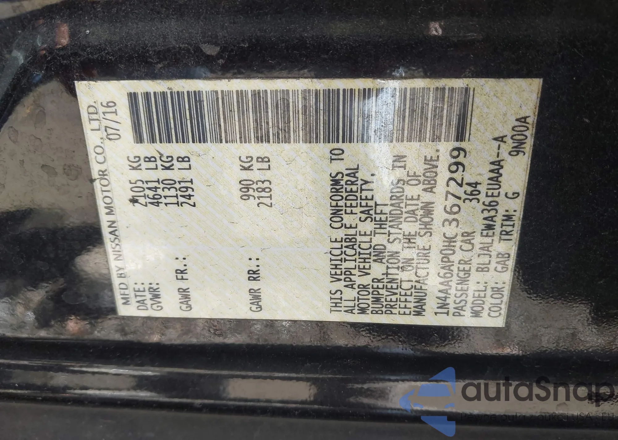 • VIN 1N4AA6AP0GC399121