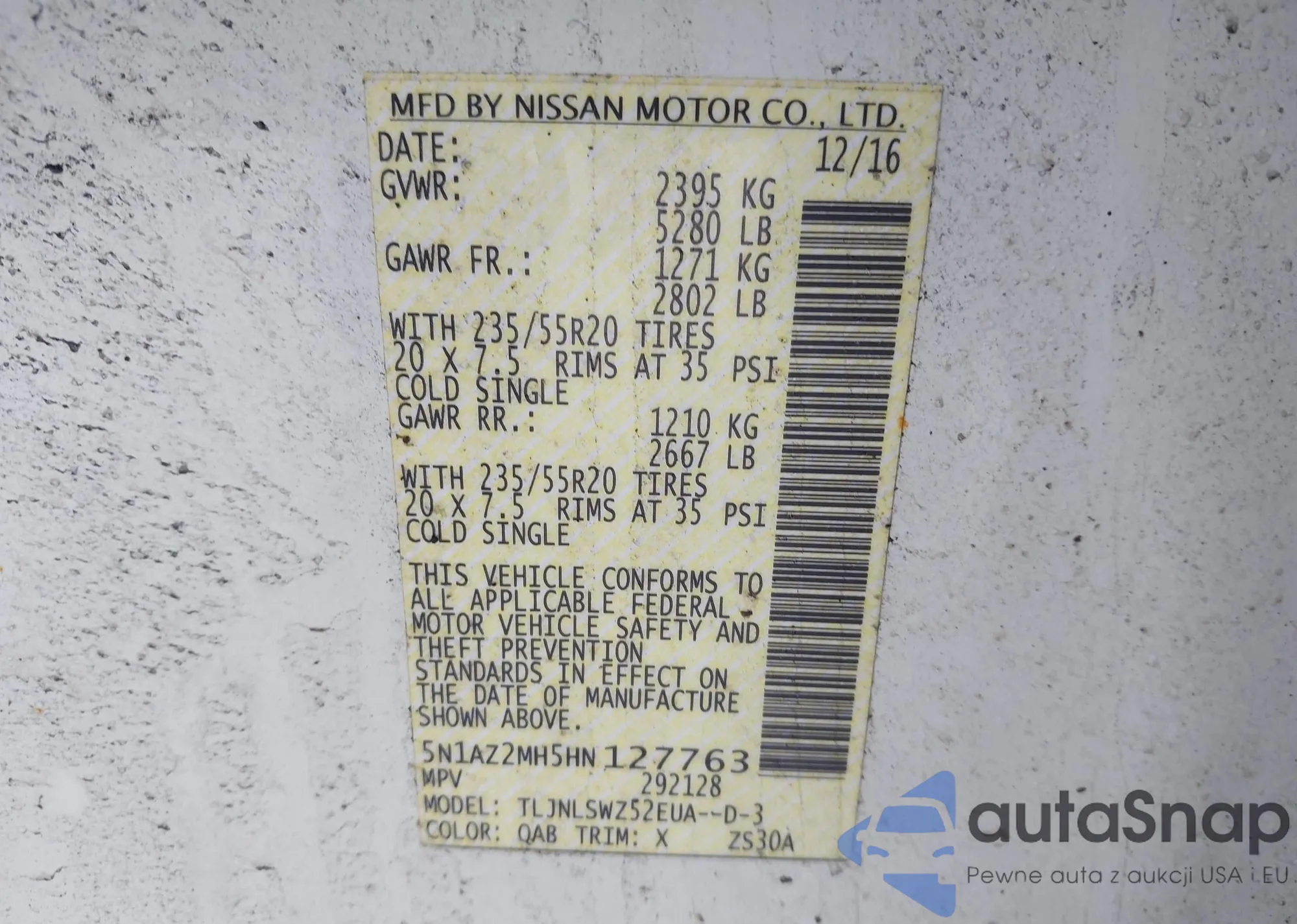 • VIN 5N1AZ2MH5HN127763