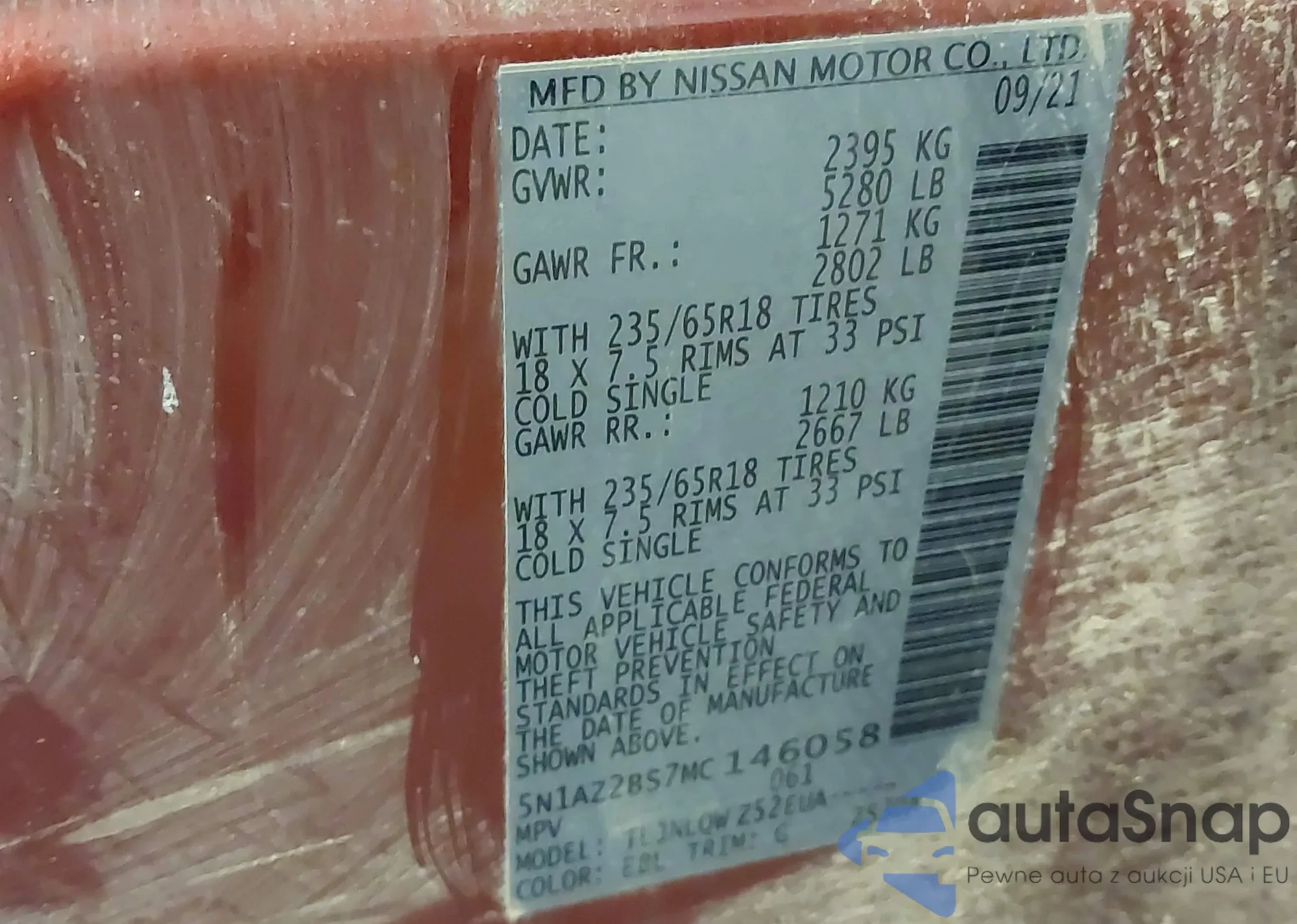 • VIN 5N1AZ2BS7MC146058