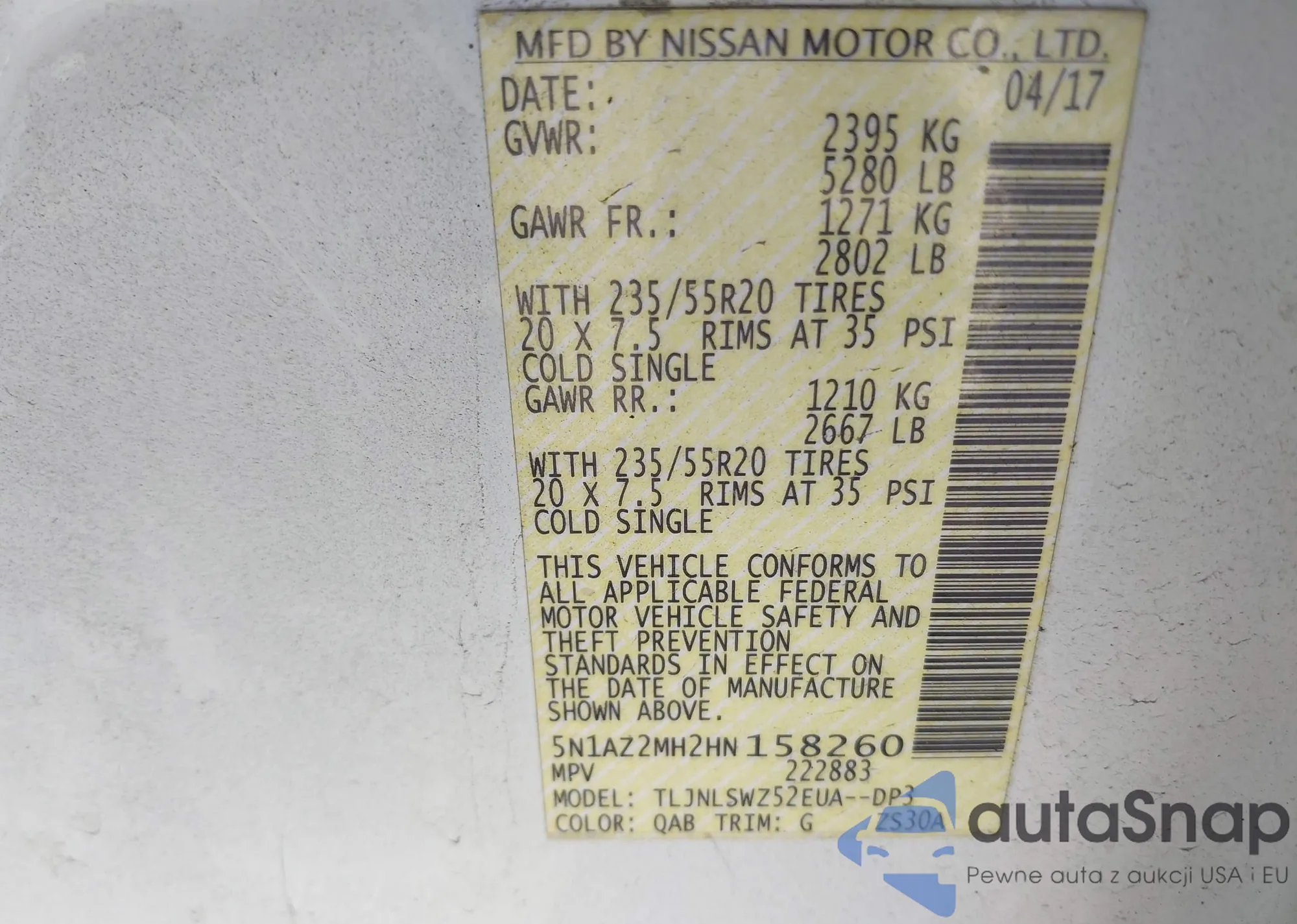• VIN 5N1AZ2MH2HN158260