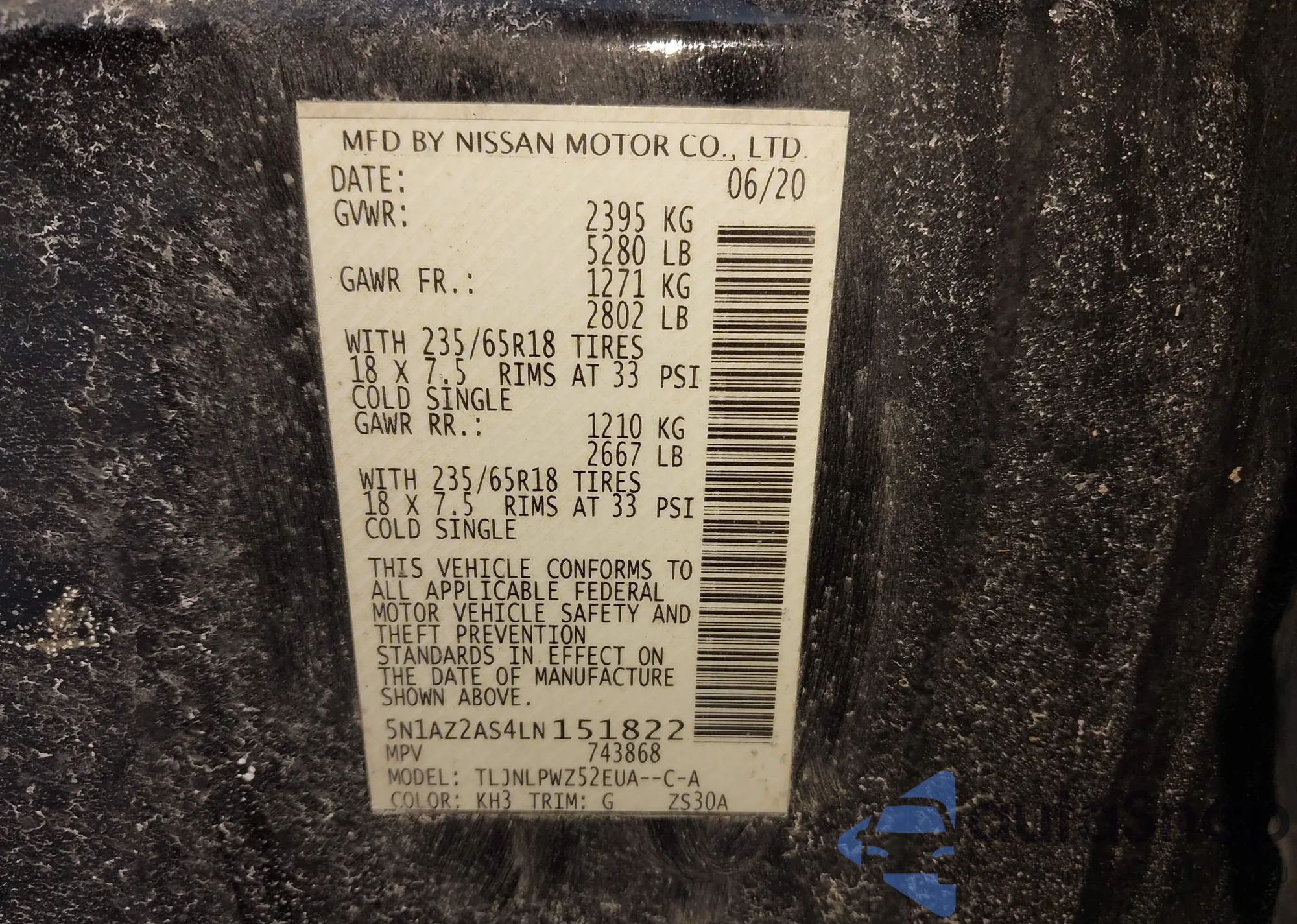 • VIN 5N1AZ2AS4LN151822