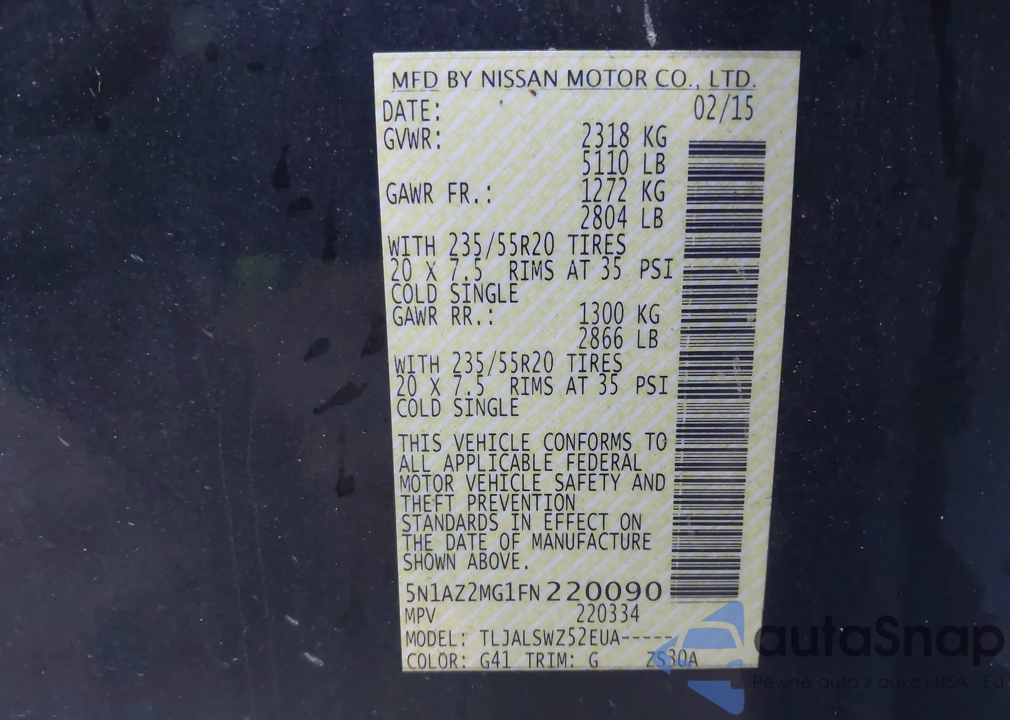 • VIN 5N1AZ2AS3LN149432