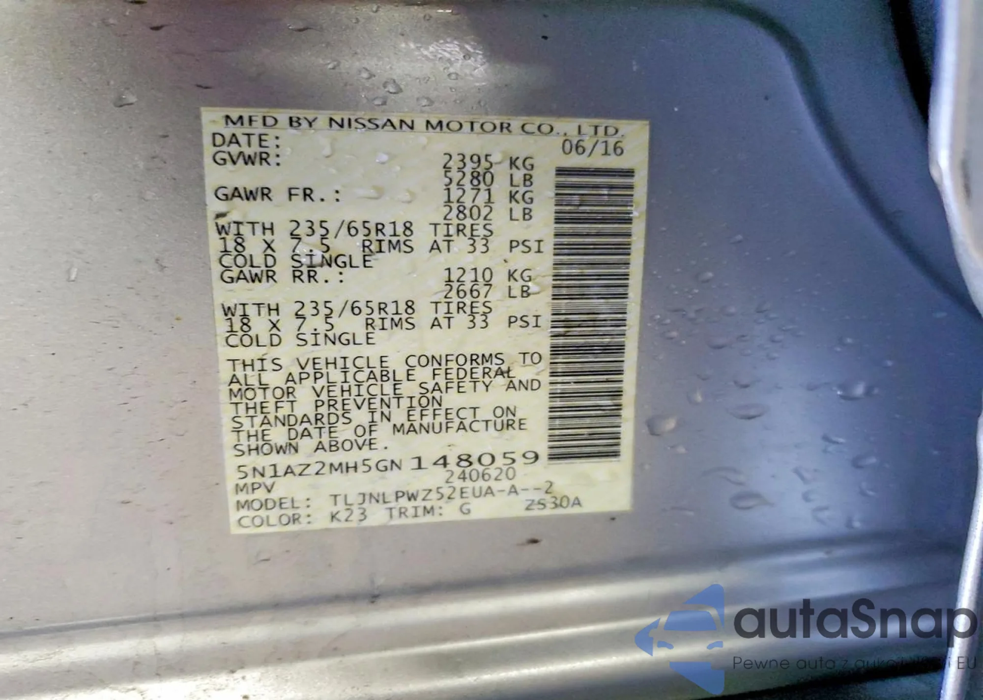 • VIN 5N1AZ2MH5GN148059