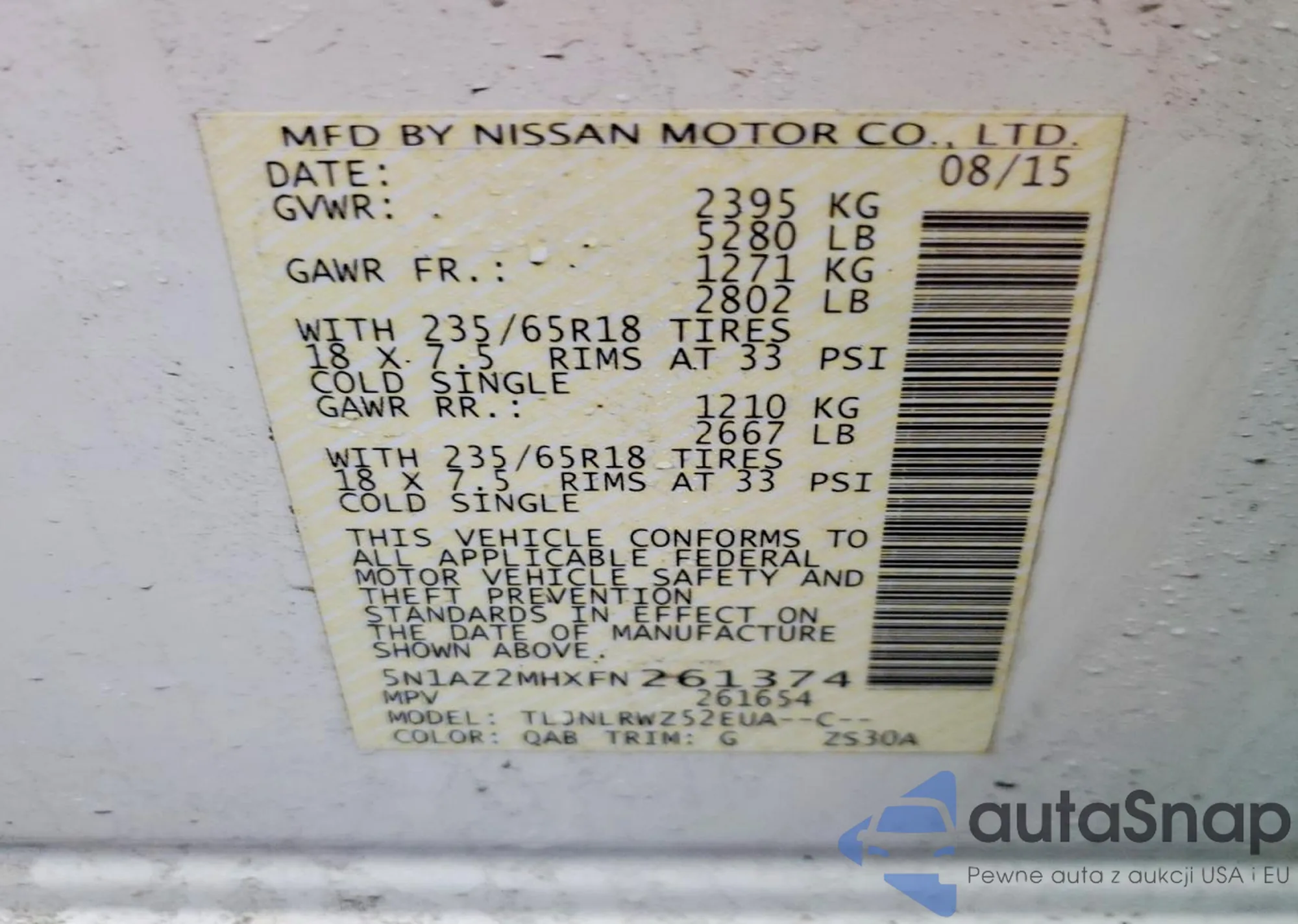 • VIN 5N1AZ2MHXFN261374