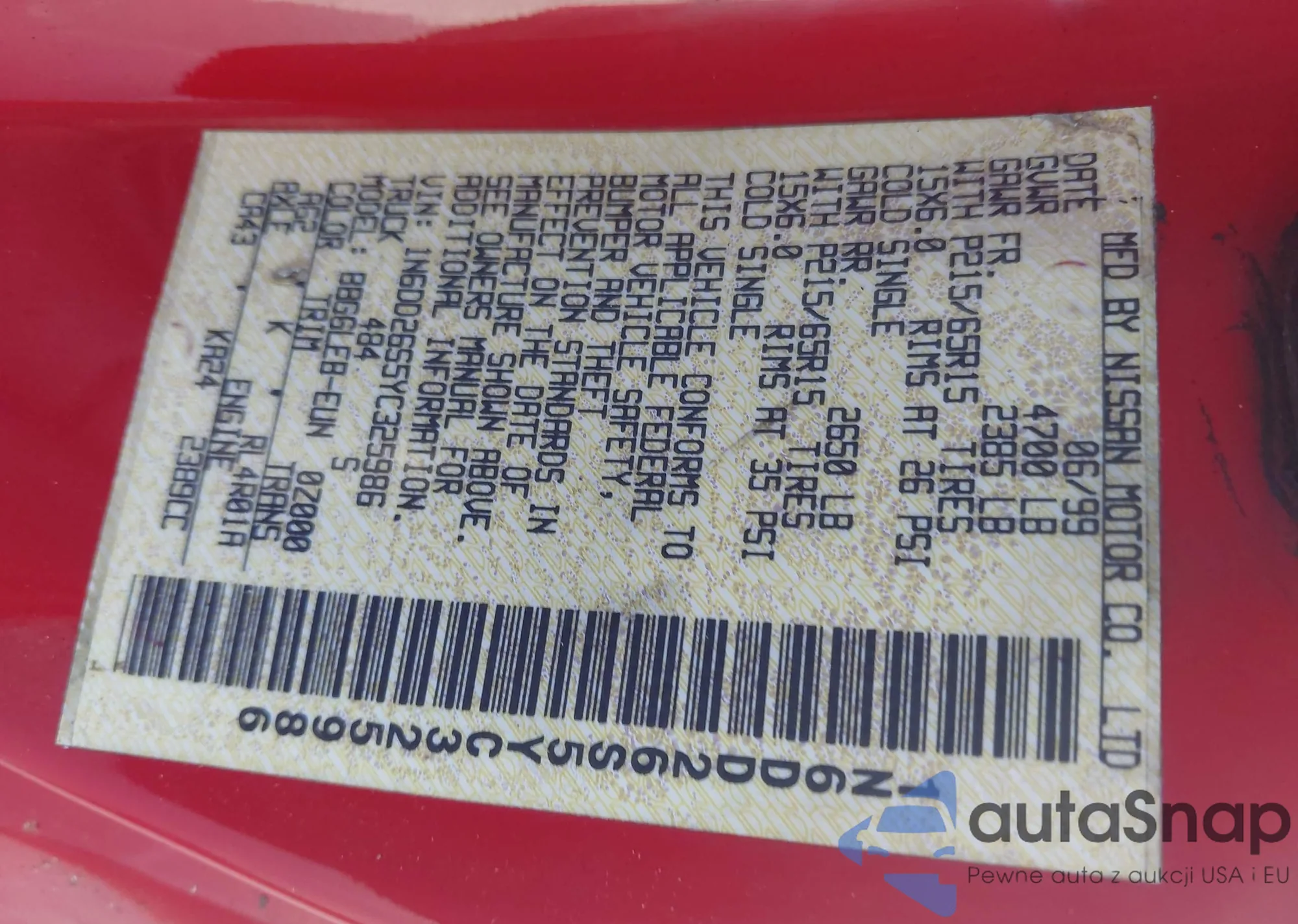 LOT: 43912818 VIN: 1N6ED27T6YC358006